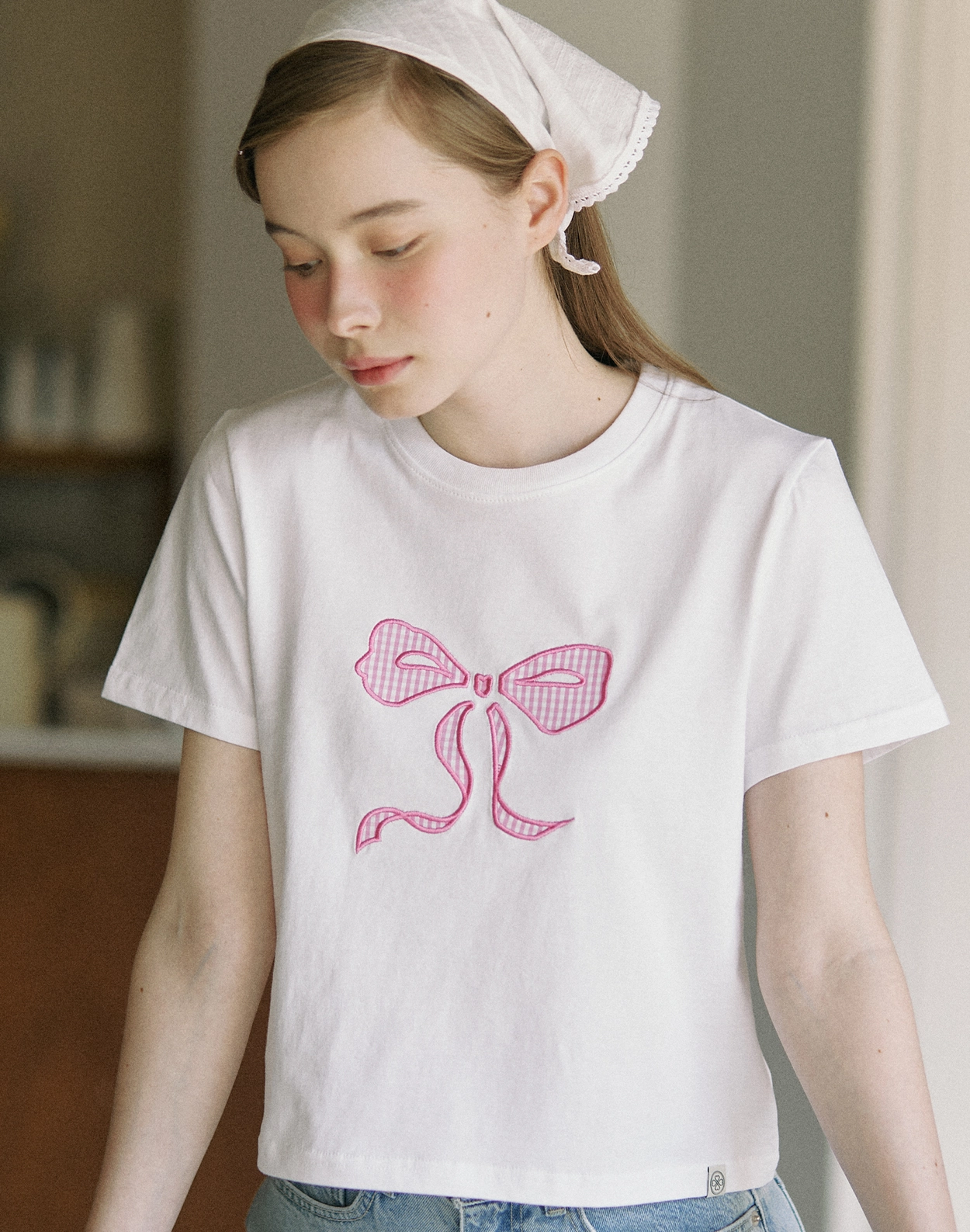 Satin Ribbon T-shirt - Pink Check