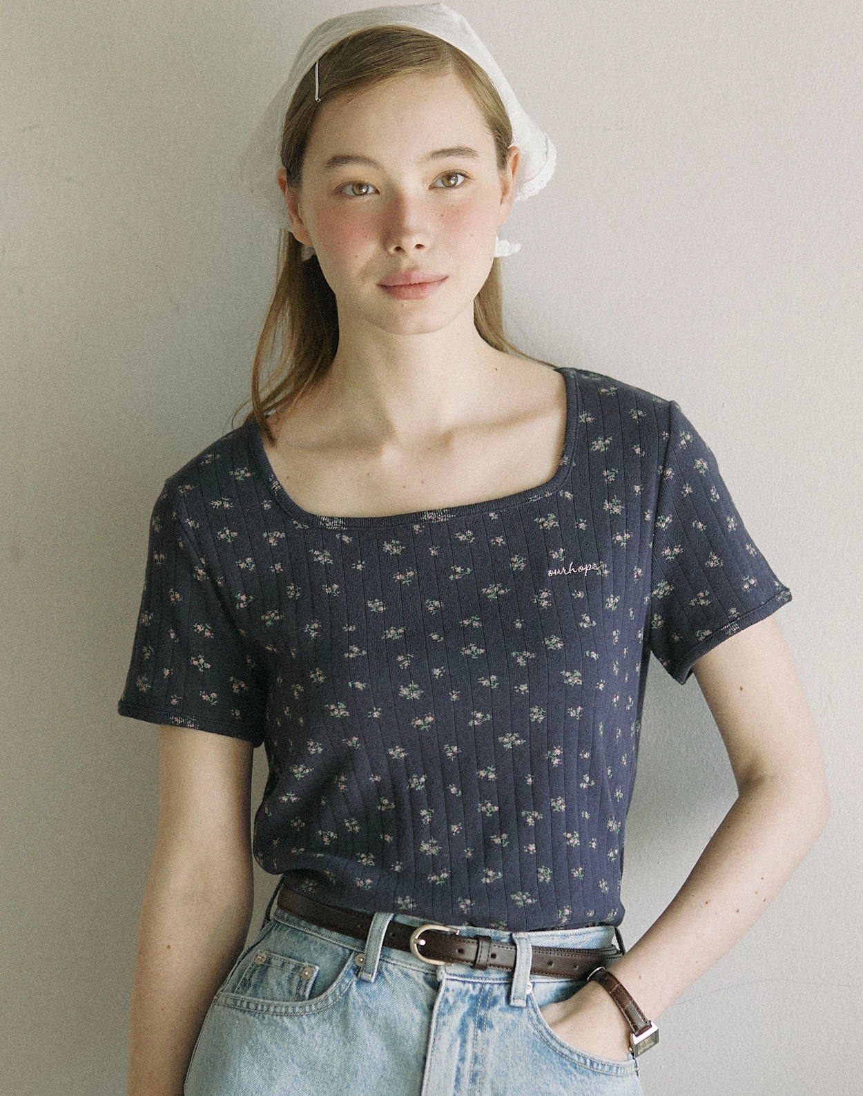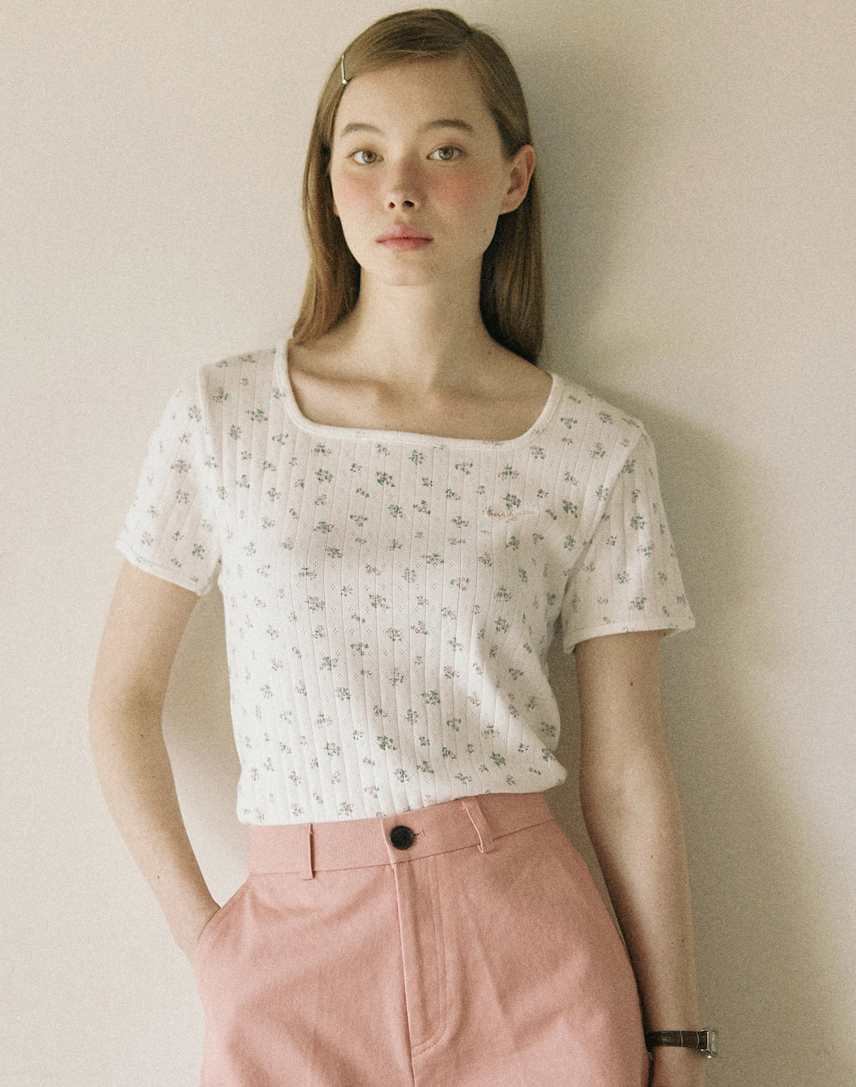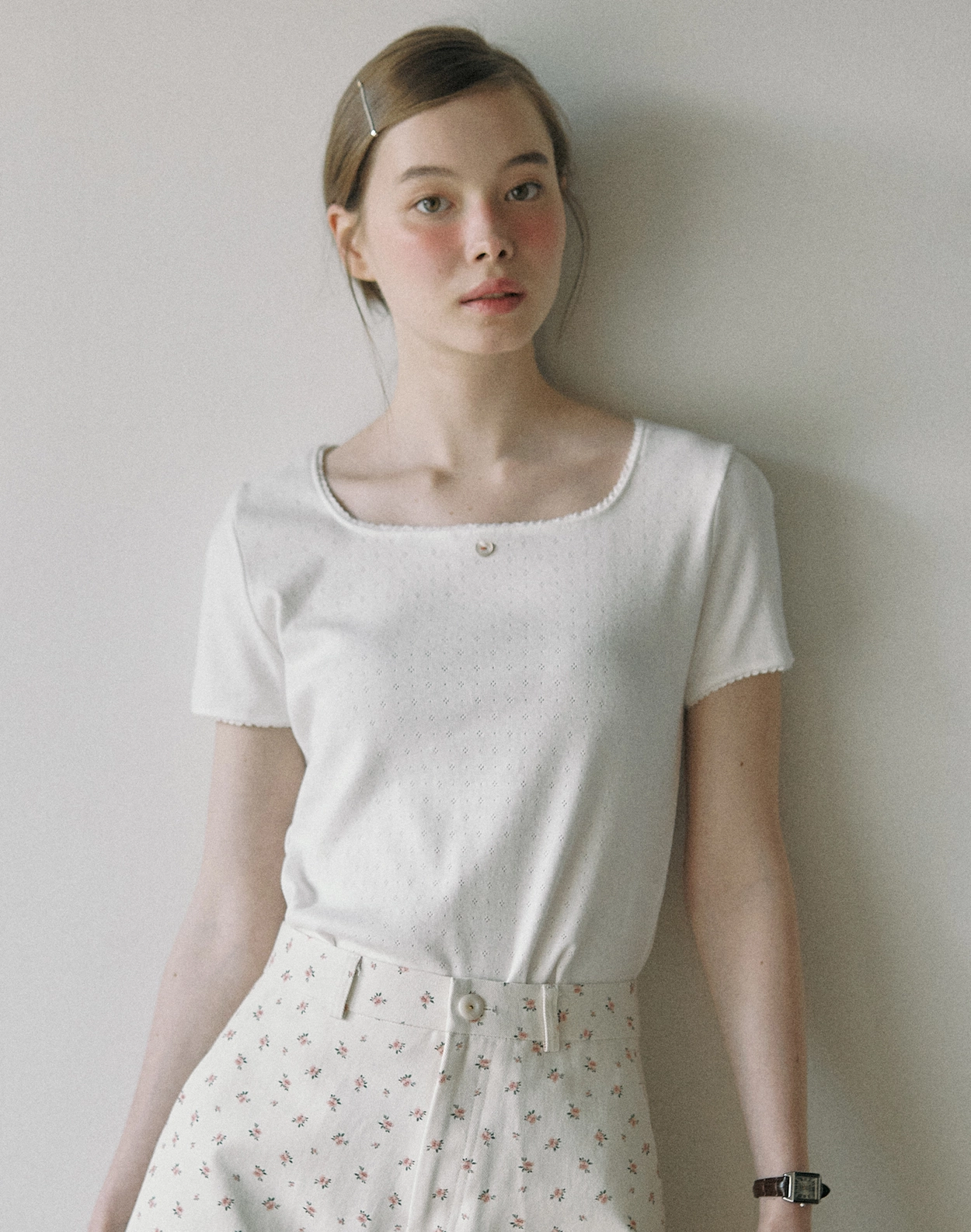 Tiny Floral Slim T-shirt - White