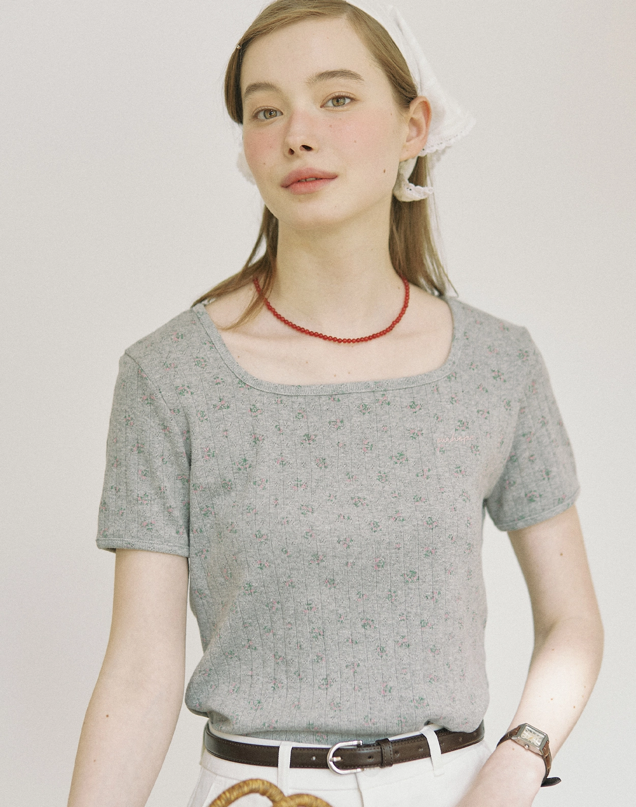 Tiny Floral Slim T-shirt - Melange Grey