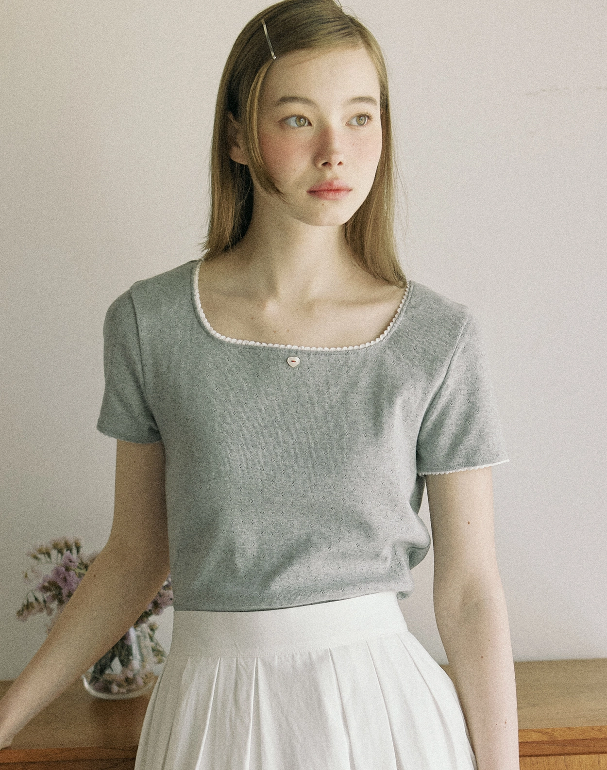 French Lace T-shirt - Melange Grey