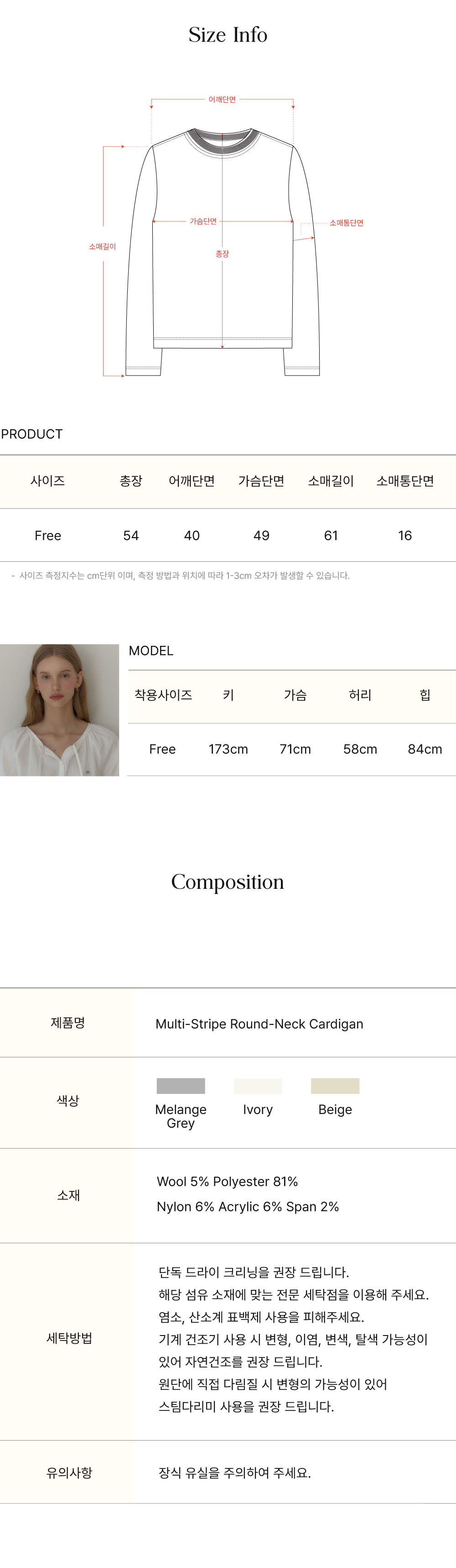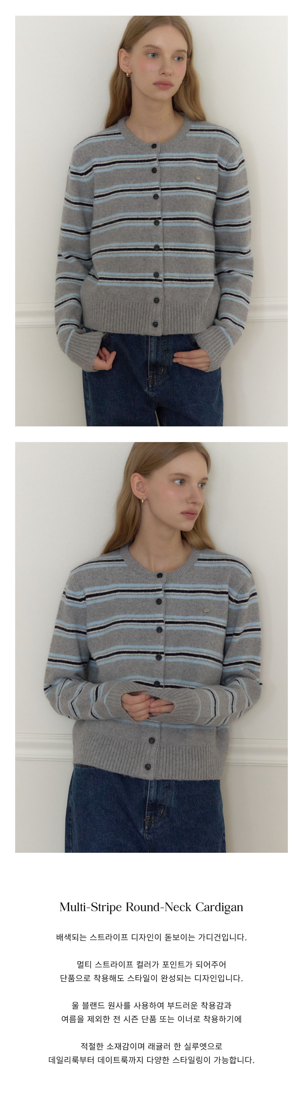 [11/20 예약배송] Multi-Stripe Round-Neck Cardigan - Melange grey