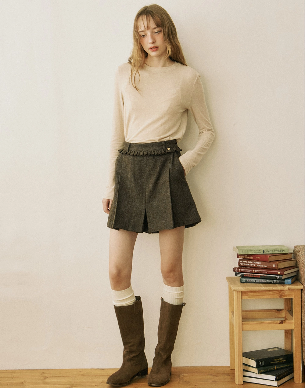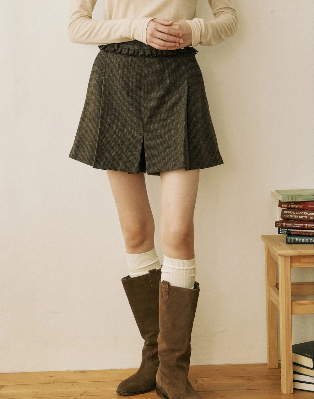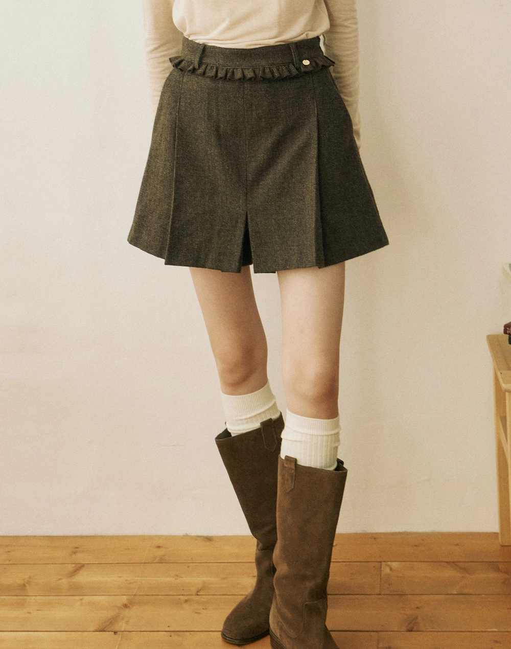 Wool Frill Culotte Pants - Brown