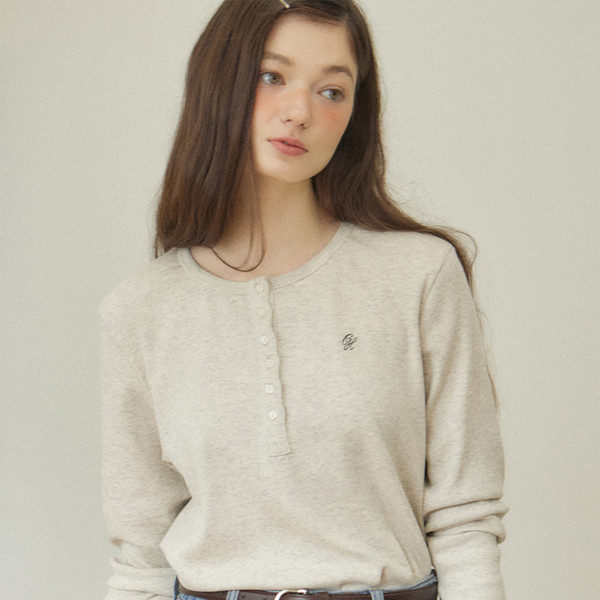 Logo Henley Neck Sleeve T-shirt - Oatmeal