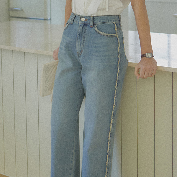 Side Fringe Denim - Medium Blue