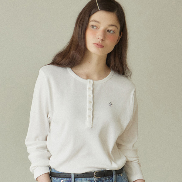 [리퍼브]Logo Henley Neck Sleeve T-shirt - White