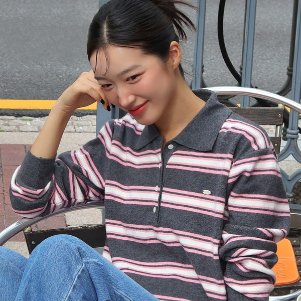 Multi Stripe Collar Knit - Pink