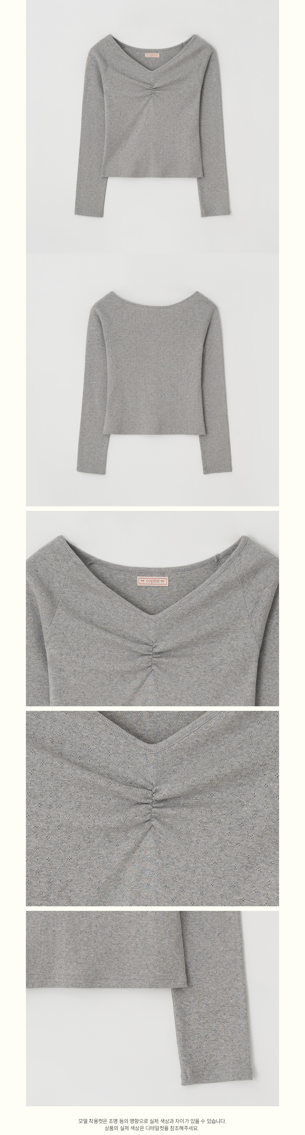 Front Shirring Raglan Sleeve T-shirt - Melange Grey