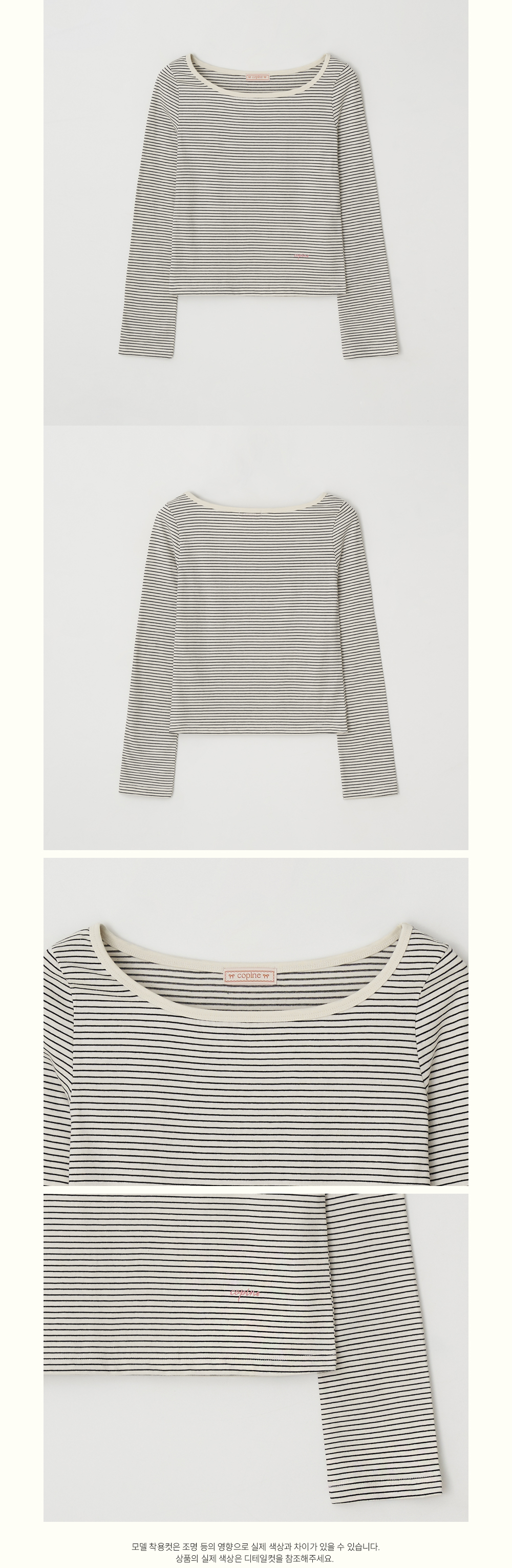 Stripe Boat Neck Logo Sleeve T-shirt - Black