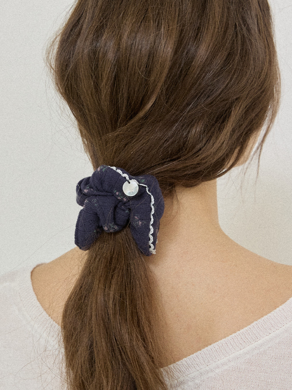 [리퍼브]Positive Lace Eyelet Scrunchie - Navy