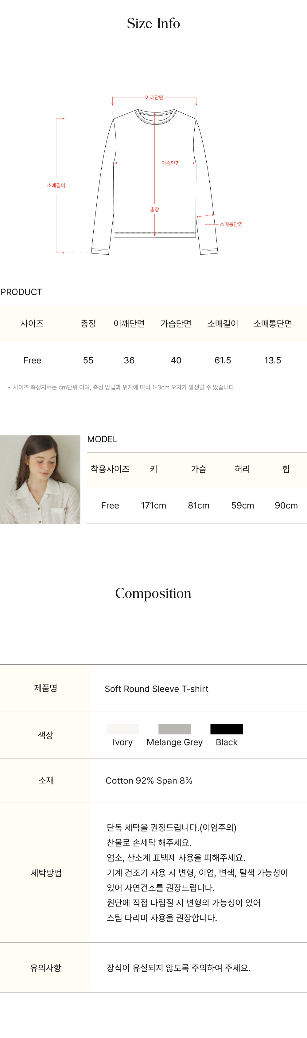 [리퍼브]Soft Round Sleeve T-shirt - Ivory