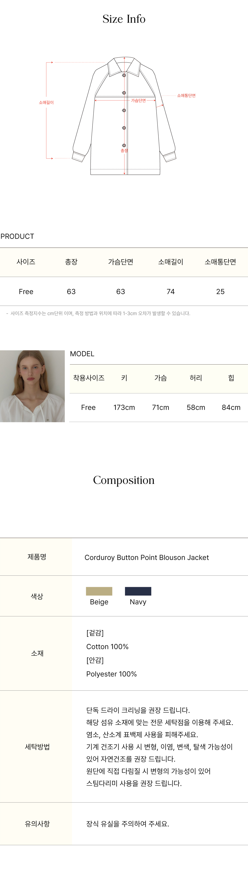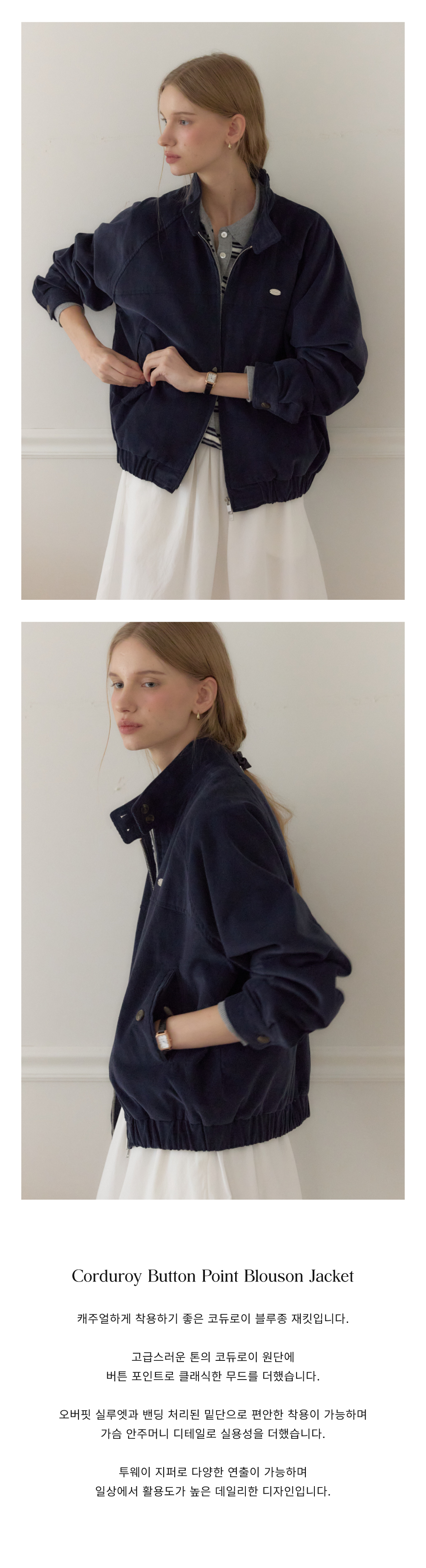 [11/20 예약배송] Corduroy Button Point Blouson Jacket - Navy