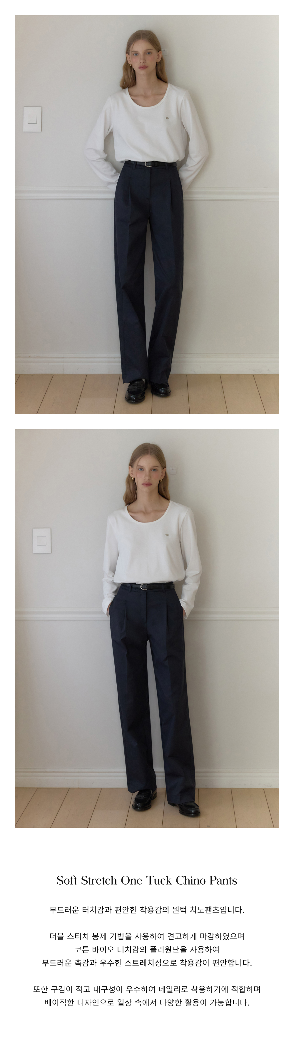 Soft Stretch One Tuck Chino Pants - Dark Navy