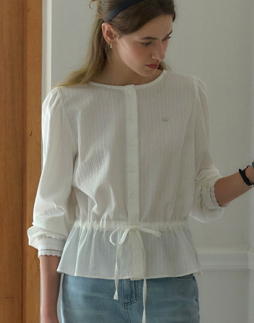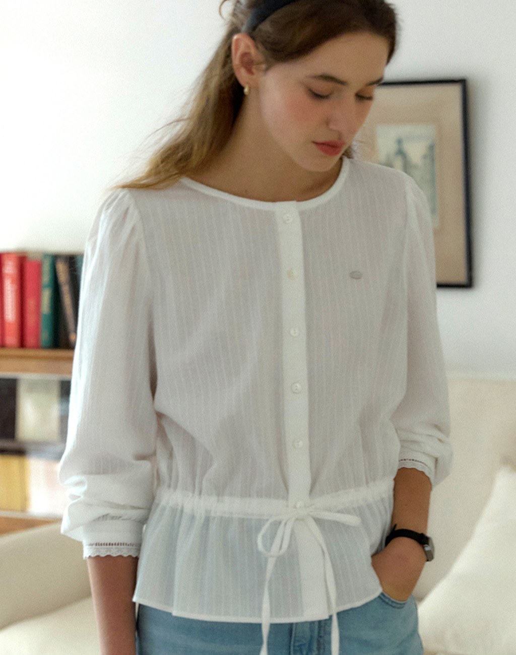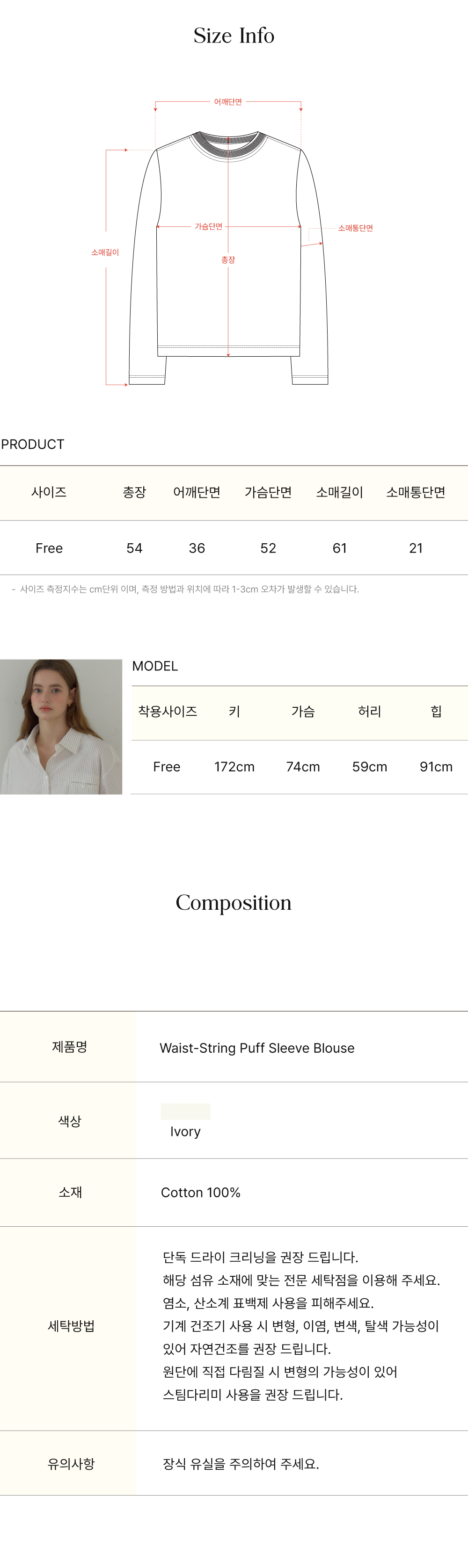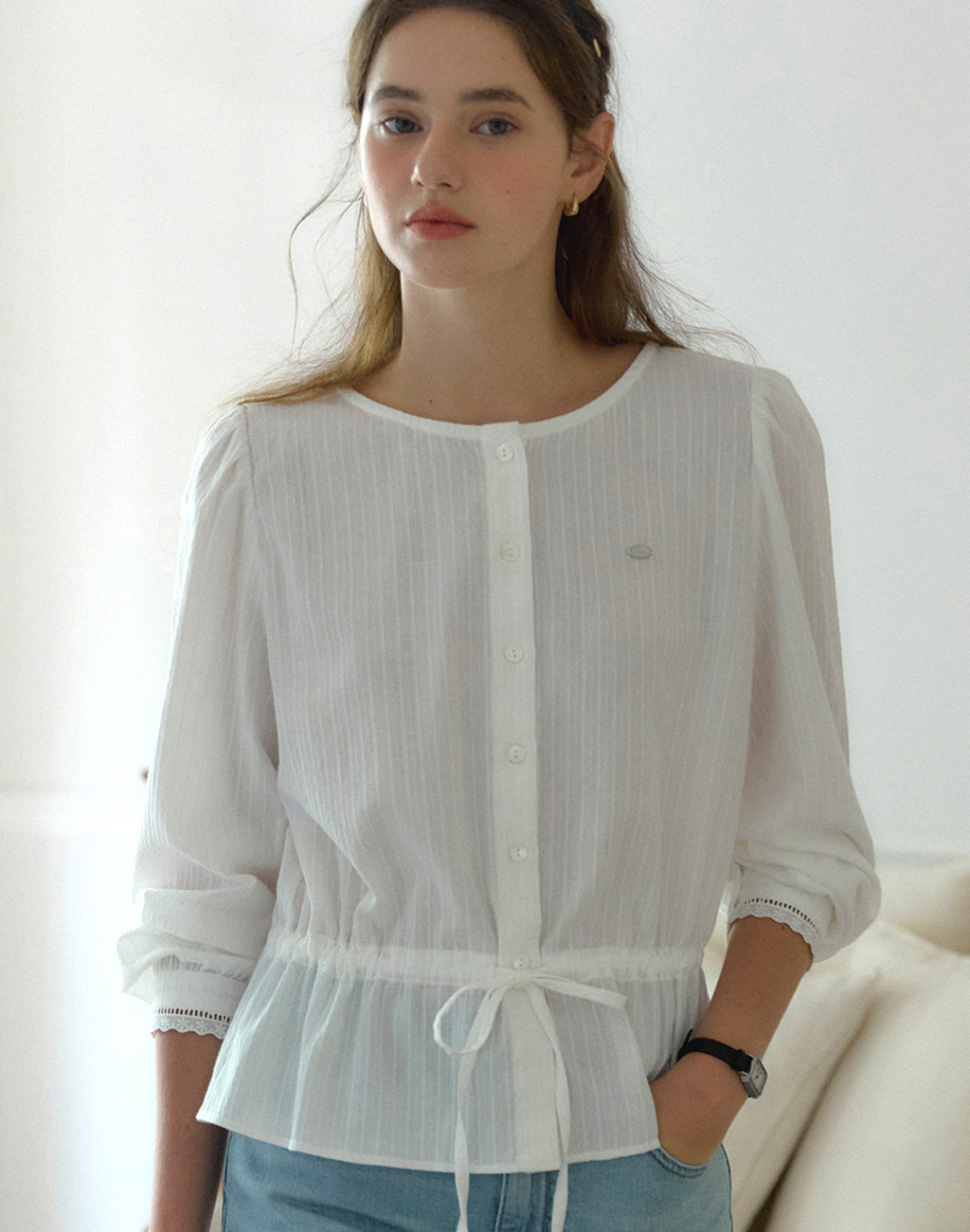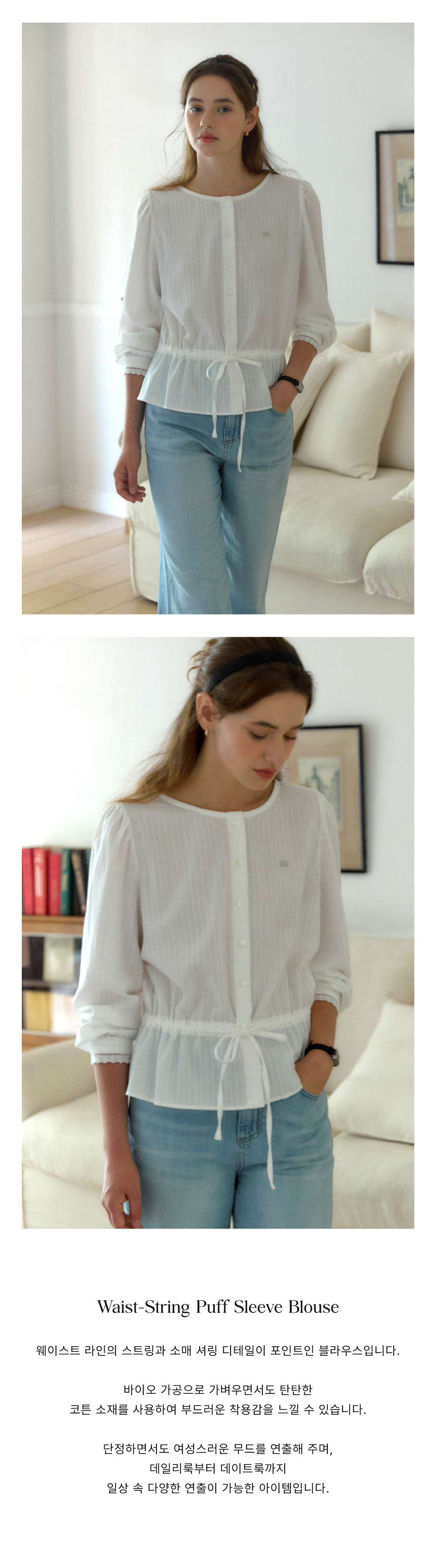 Waist-String Puff Sleeve Blouse - Ivory