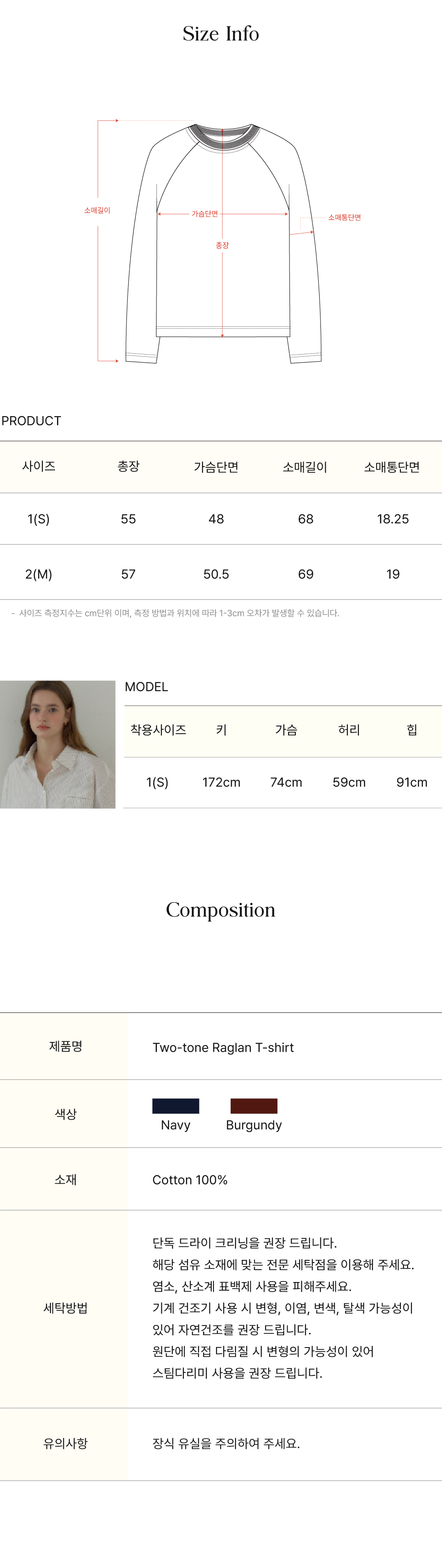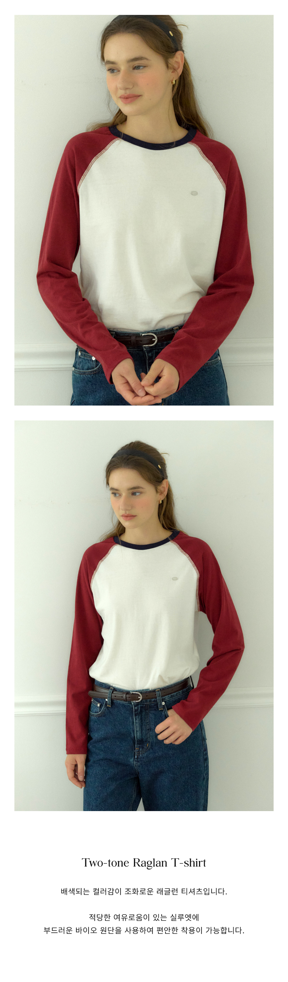 [11/20 예약배송] Two-tone Raglan T-shirt - Burgundy