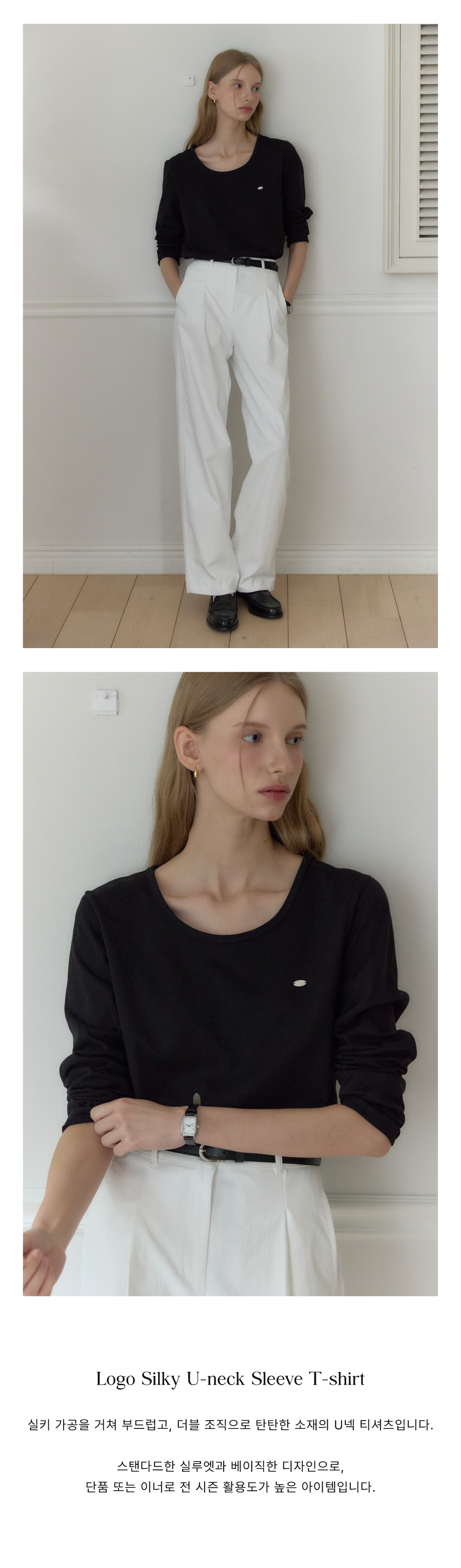 [11/10 예약배송] Logo Silky U-neck Sleeve T-shirt - Black