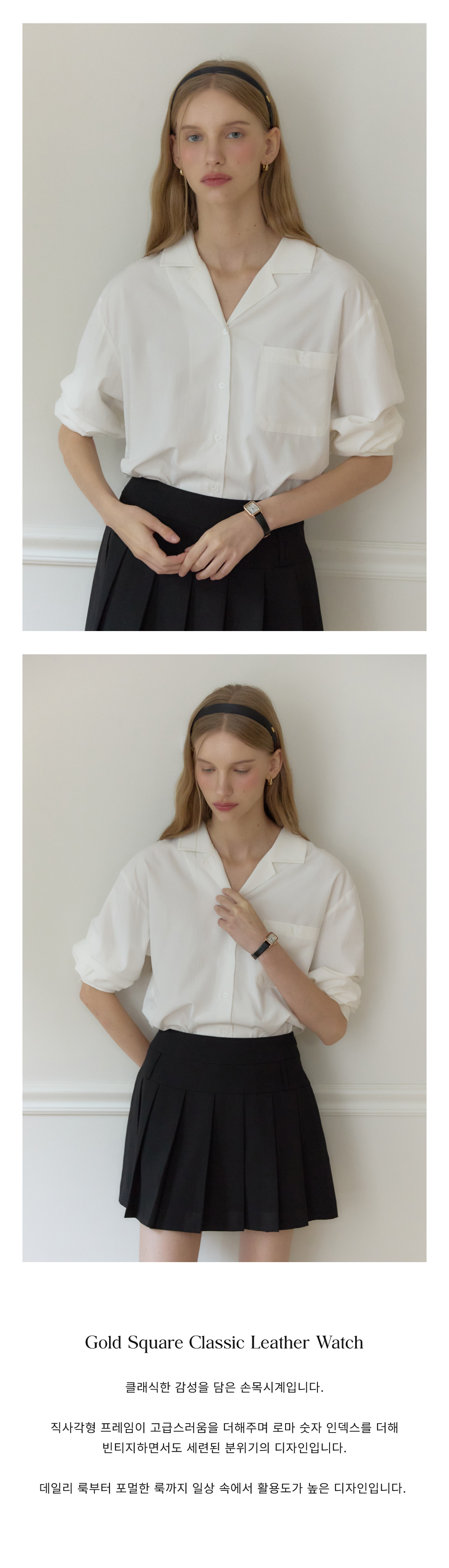 - 스트랩 길이 조정 또는 가죽 밴드 착용 시에는 제품에 손상이나 변형이 생길 수 있으므로 시착 시에도 주의해 주십시오.