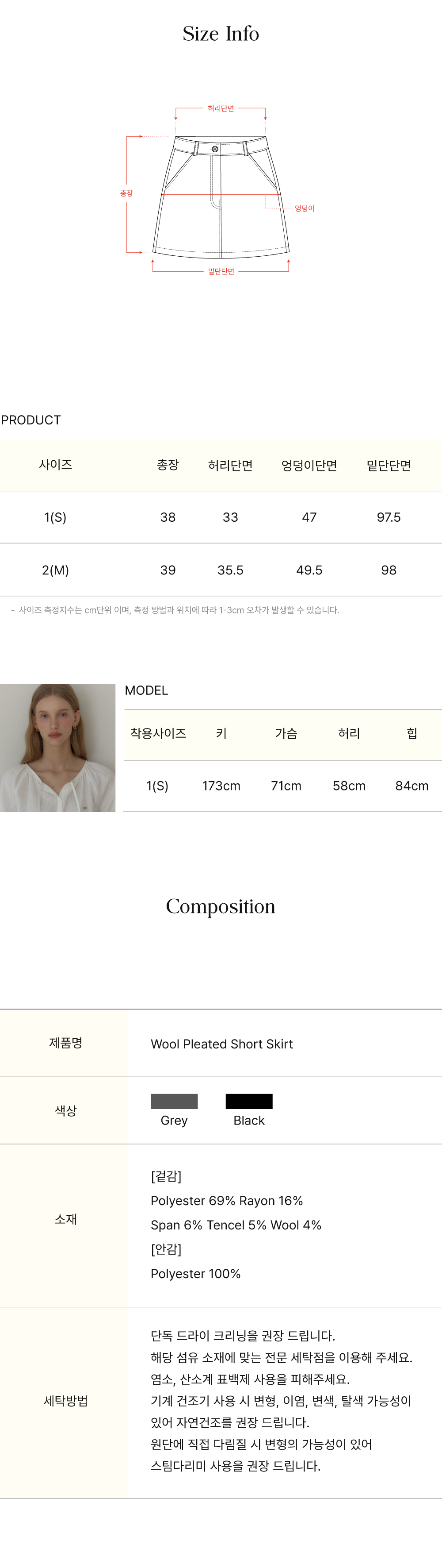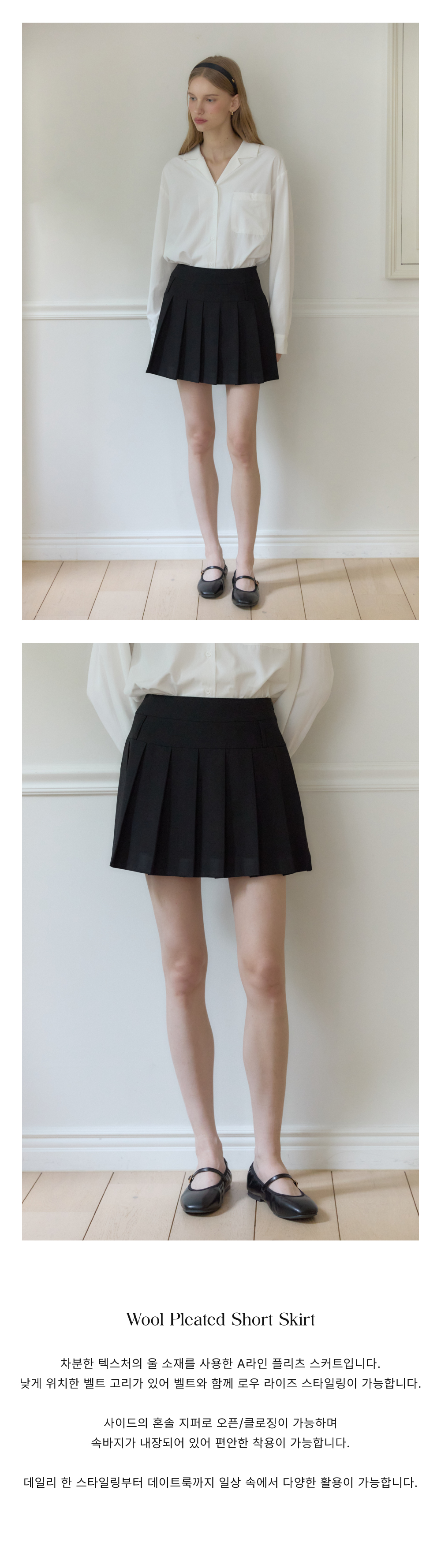 Wool Pleated Short Skirt - Black
