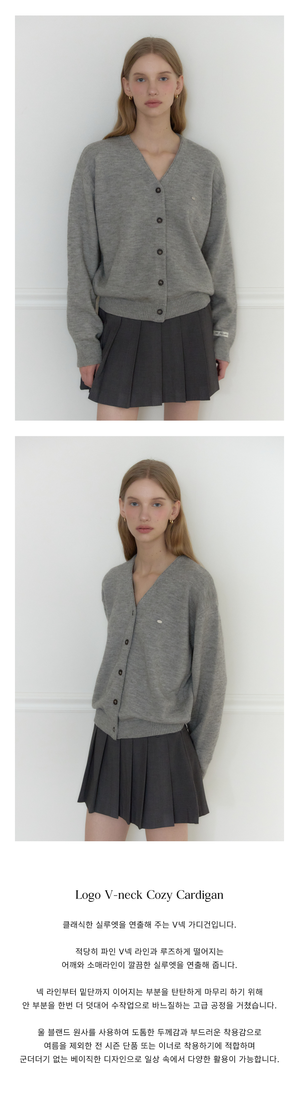 [11/18 예약배송] Logo V-neck Cozy Cardigan - Melange grey