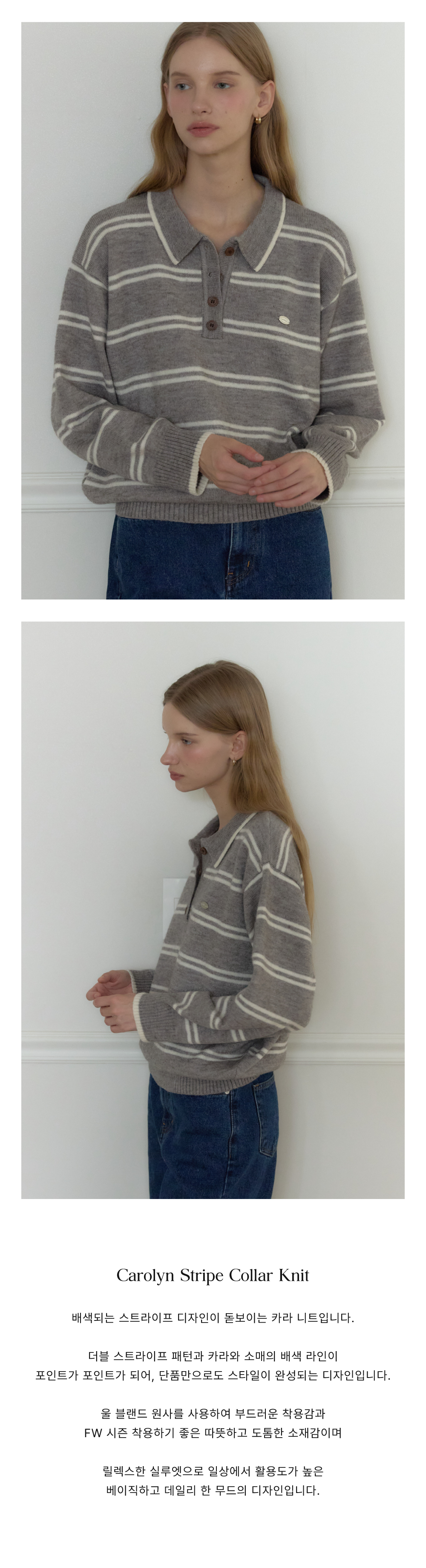 [11/20 예약배송] Carolyn Stripe Collar Knit - Melange grey