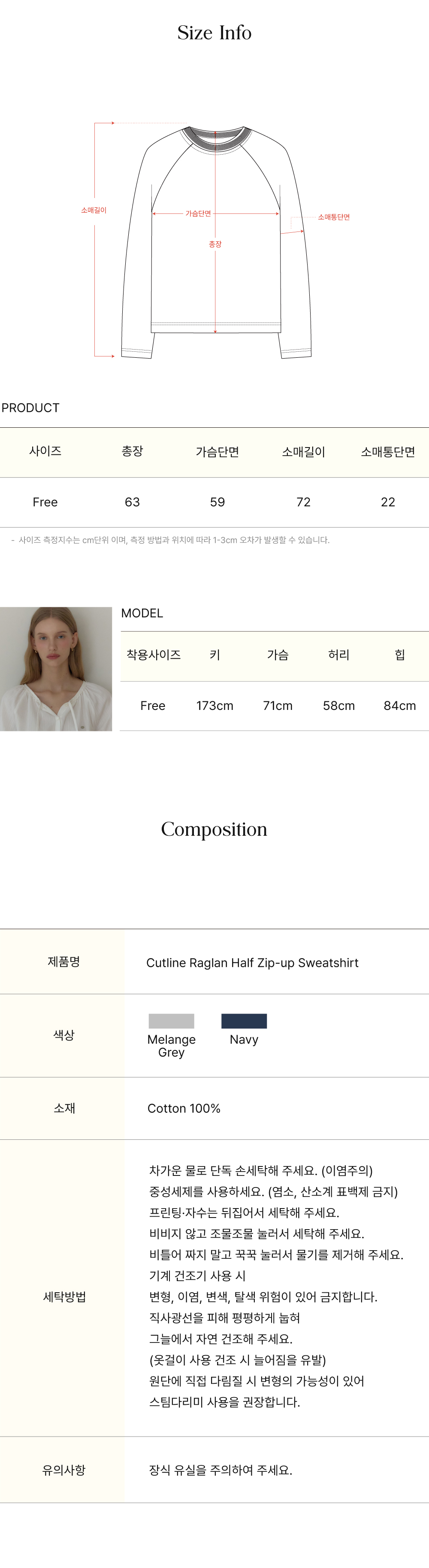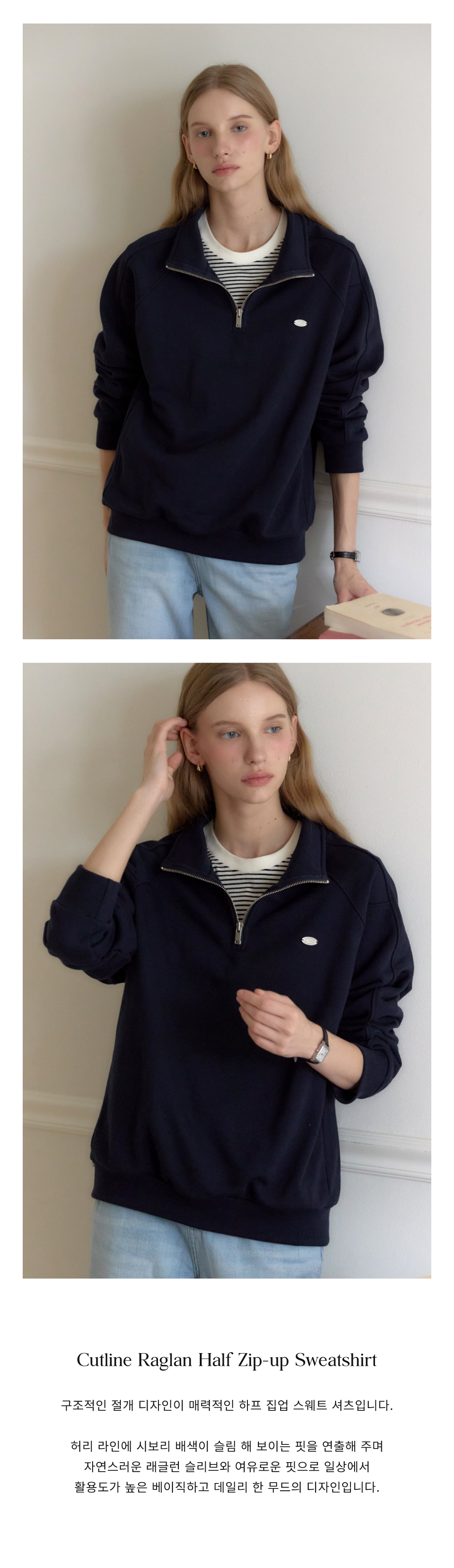 Cutline Raglan Half Zip-up Sweatshirt - Navy