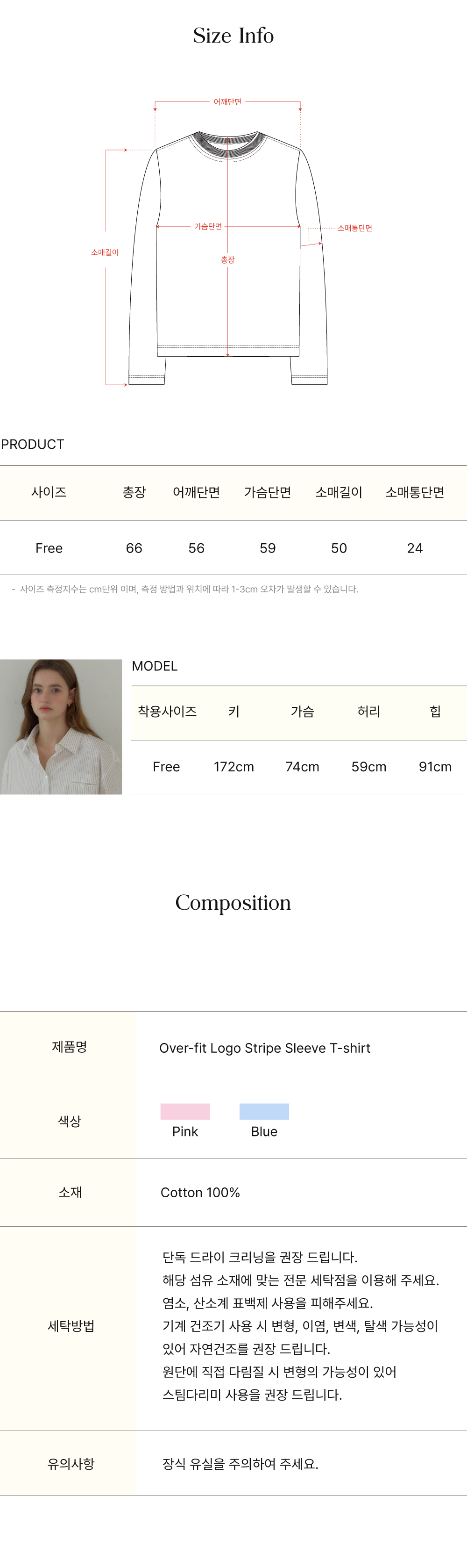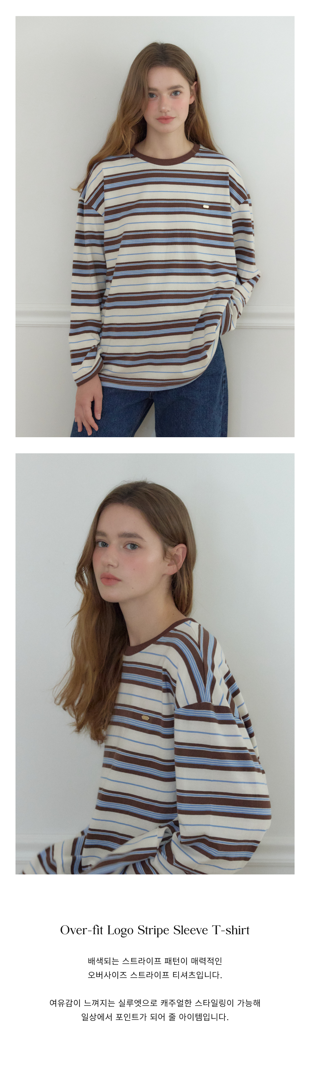 [11/20 예약배송] Over-fit Logo Stripe Sleeve T-shirt - Blue