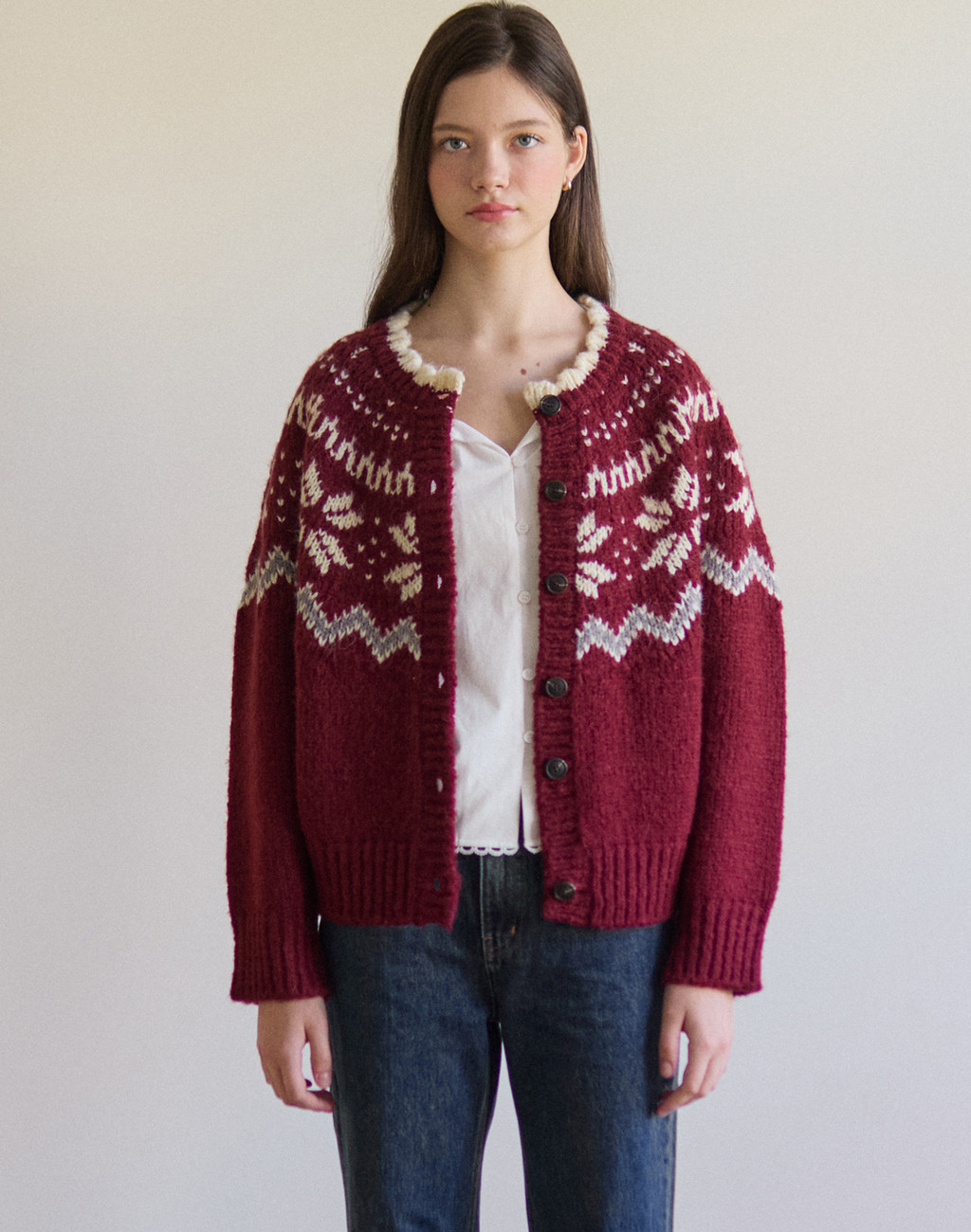 [11/14 예약배송] Flurry Alpaca Wool Nordic Cardigan - Red