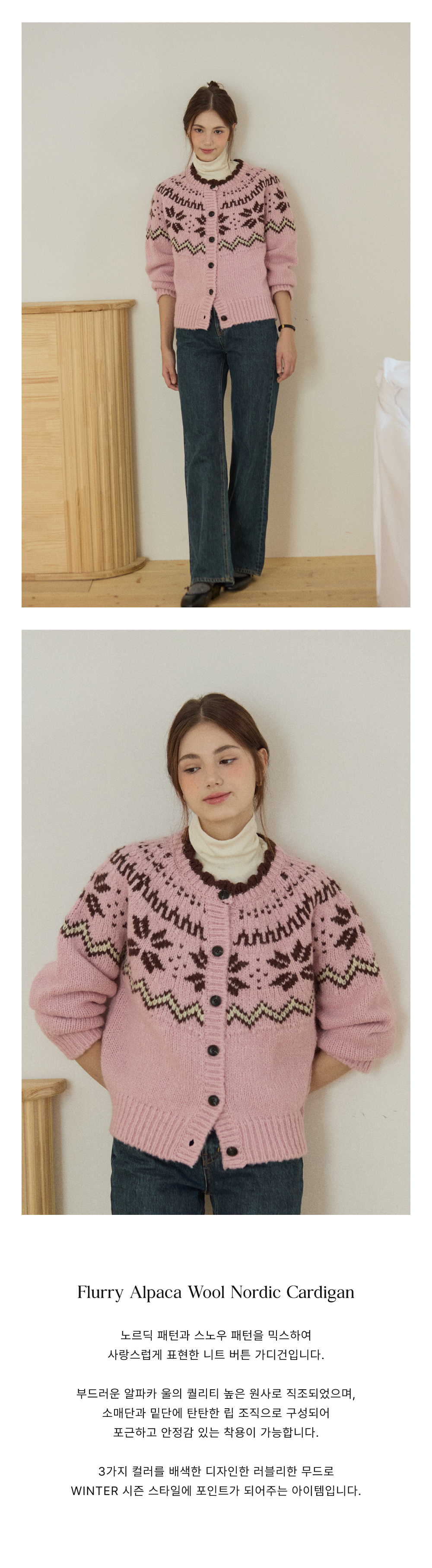 [11/14 예약배송] Flurry Alpaca Wool Nordic Cardigan - Pink
