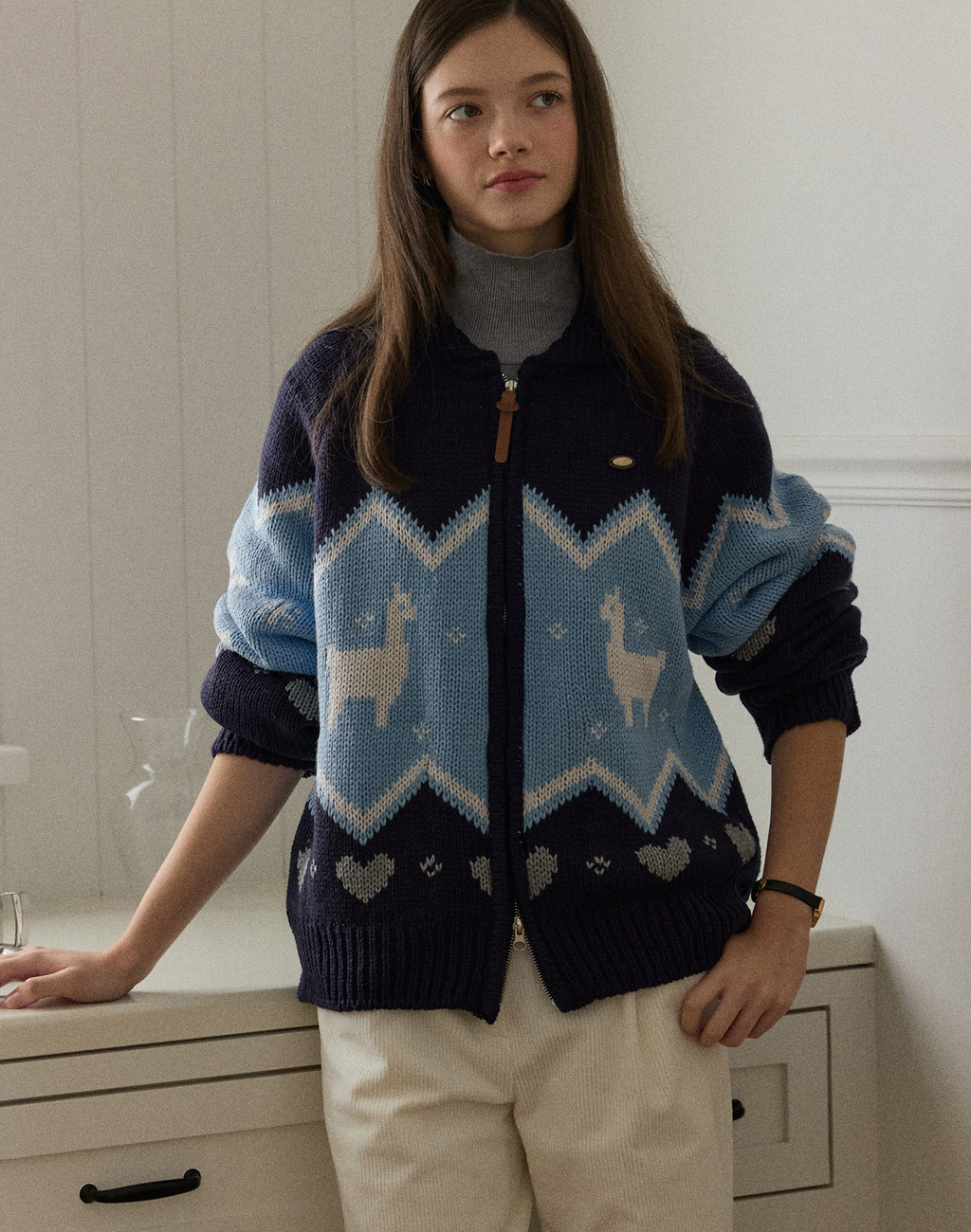 Alpaca Pattern Cowichan Knit Cardigan - Navy