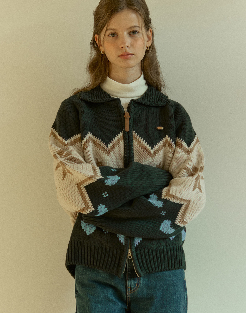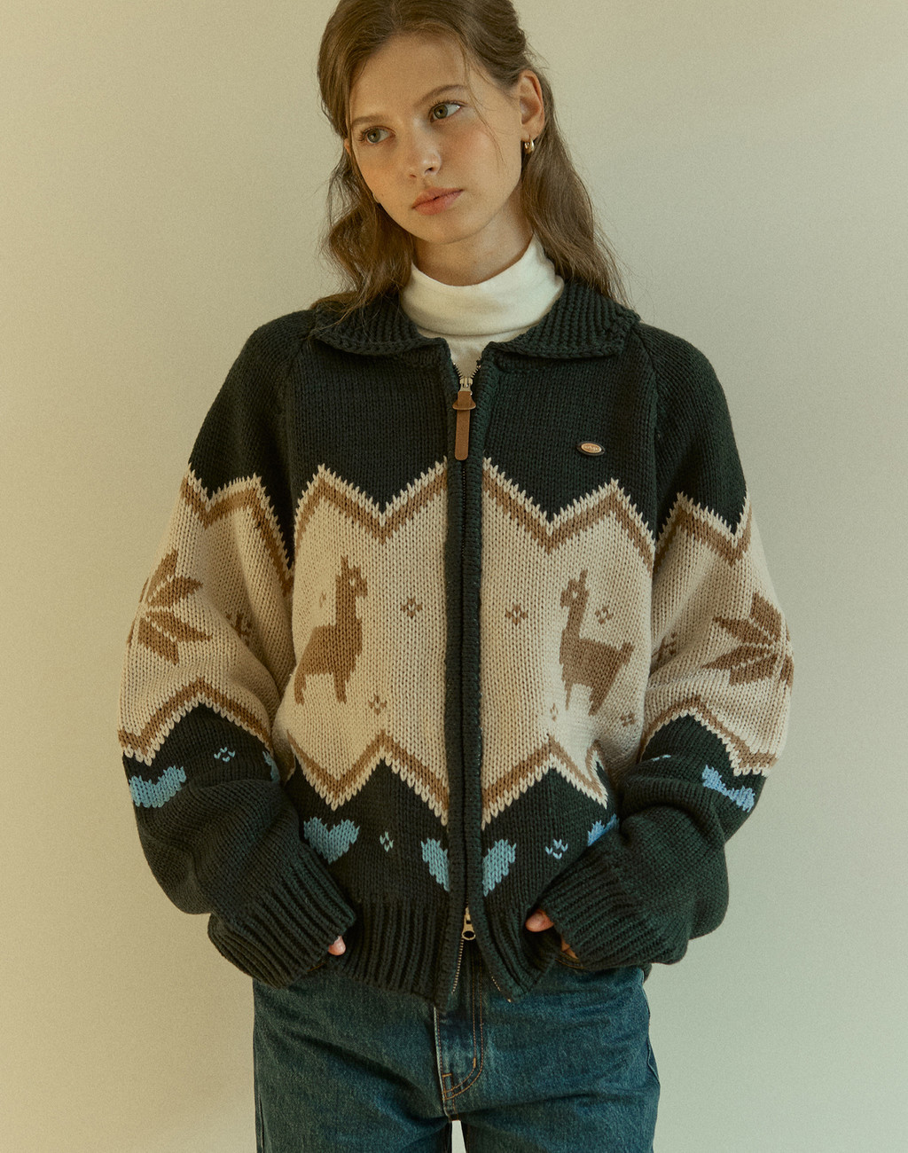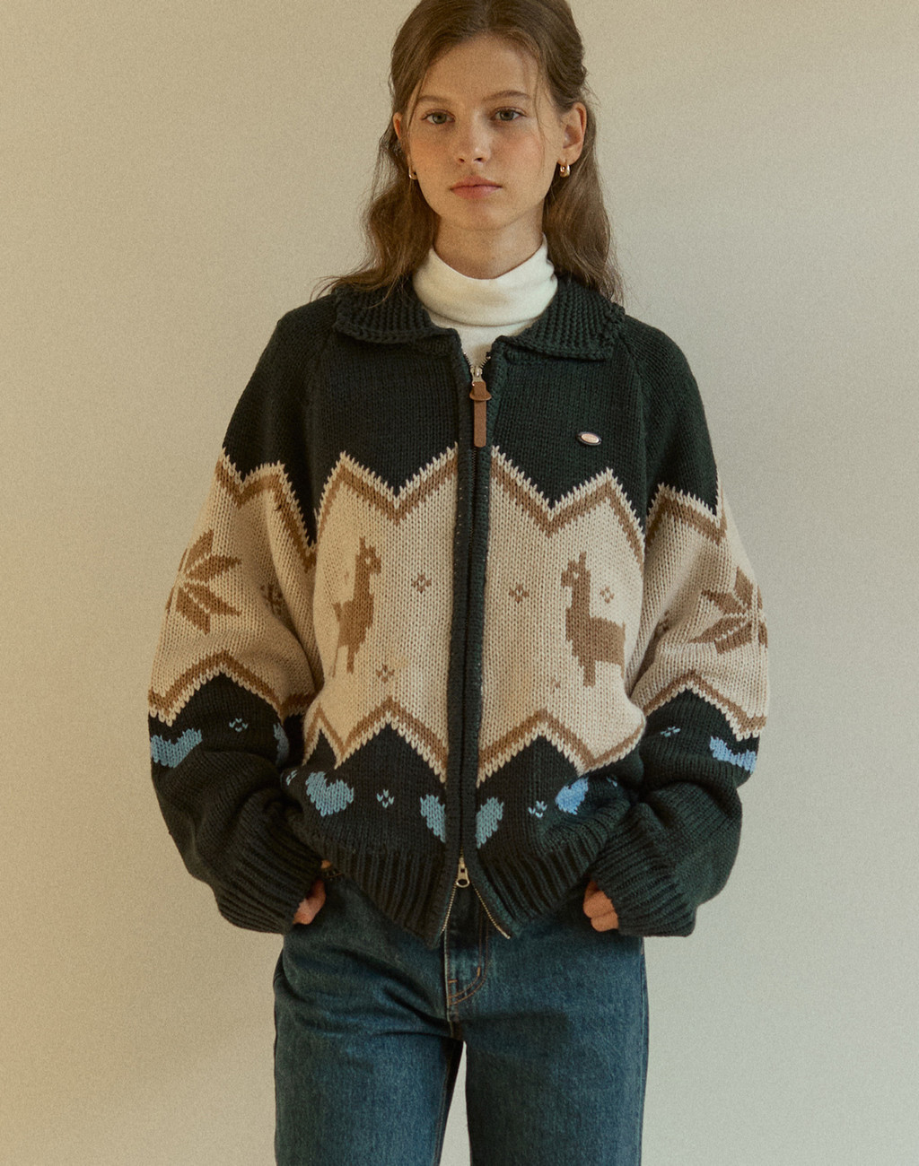 Alpaca Pattern Cowichan Knit Cardigan - Green