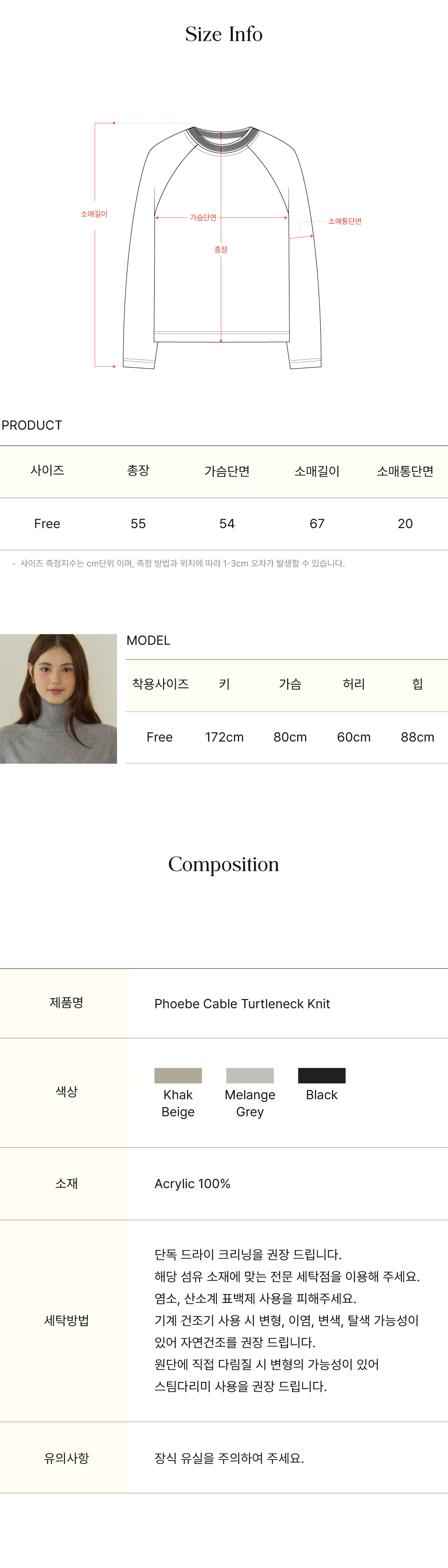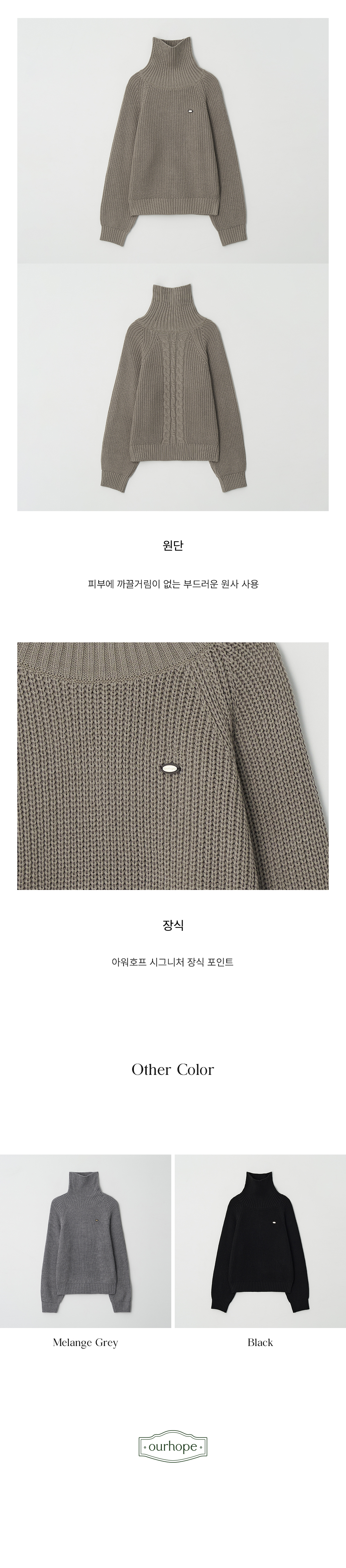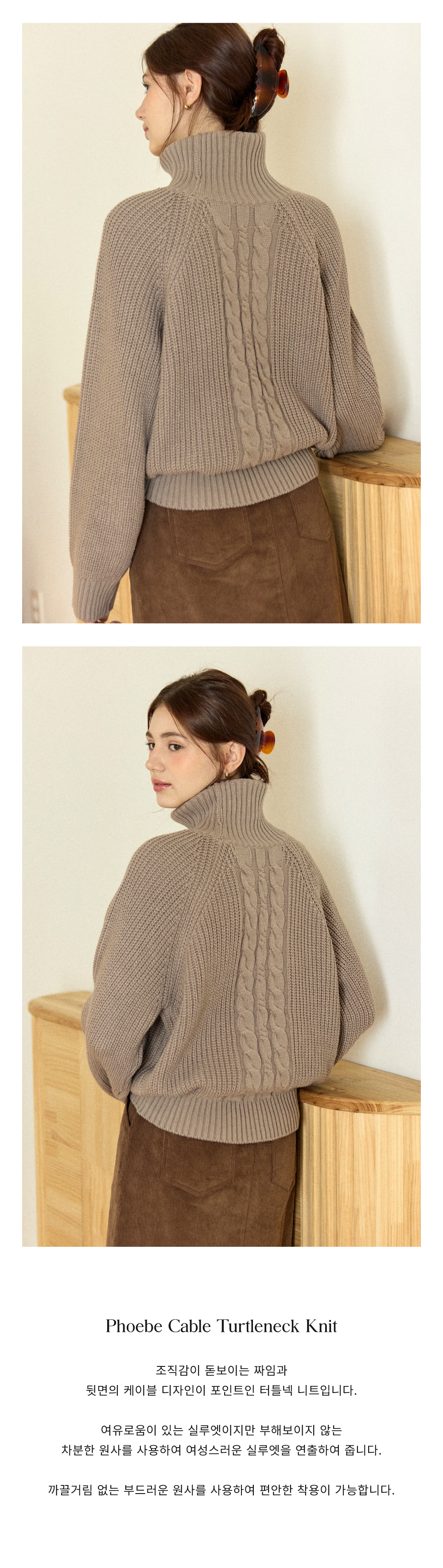 [11/28 예약배송] Phoebe Cable Turtleneck Knit - Khaki Beige