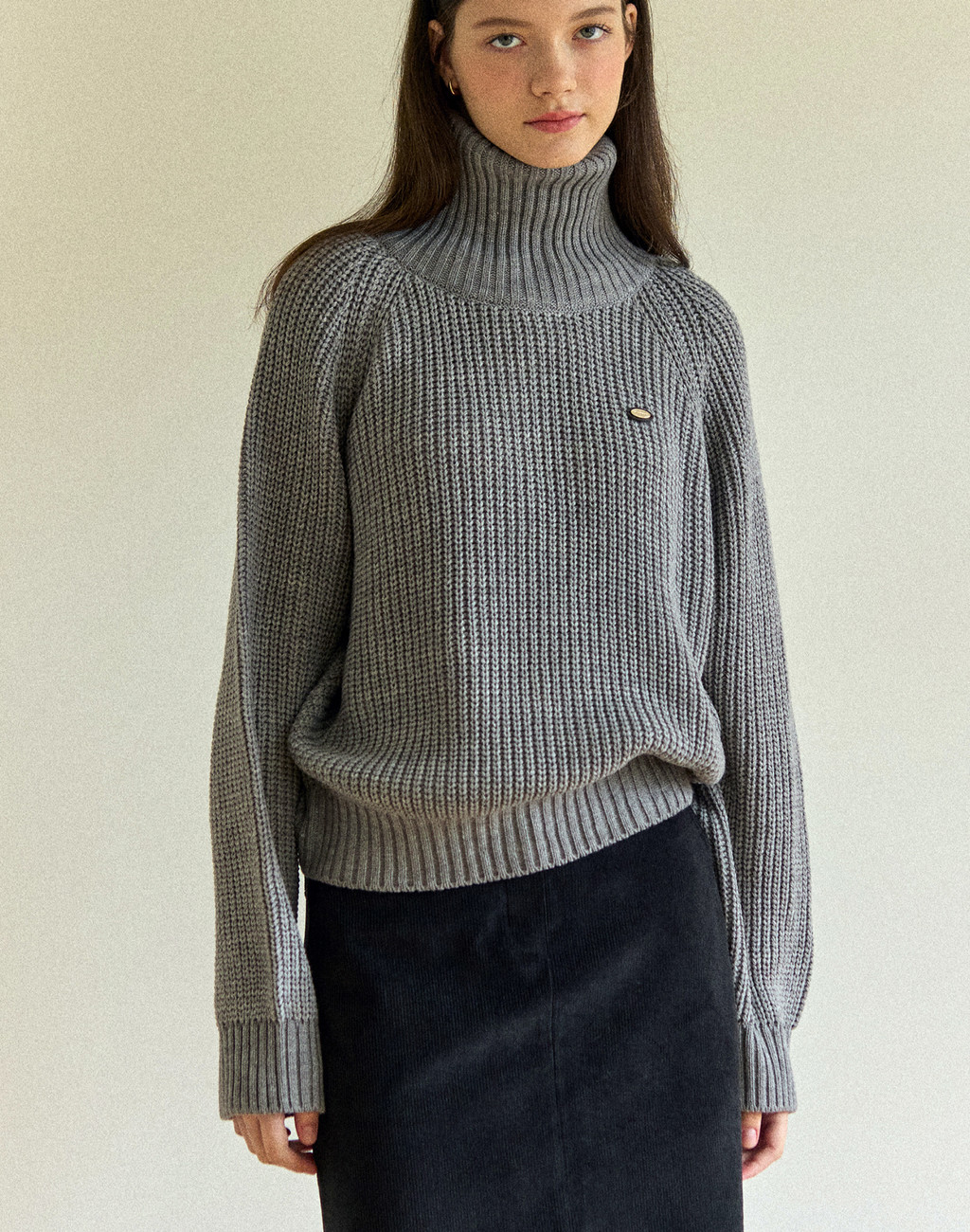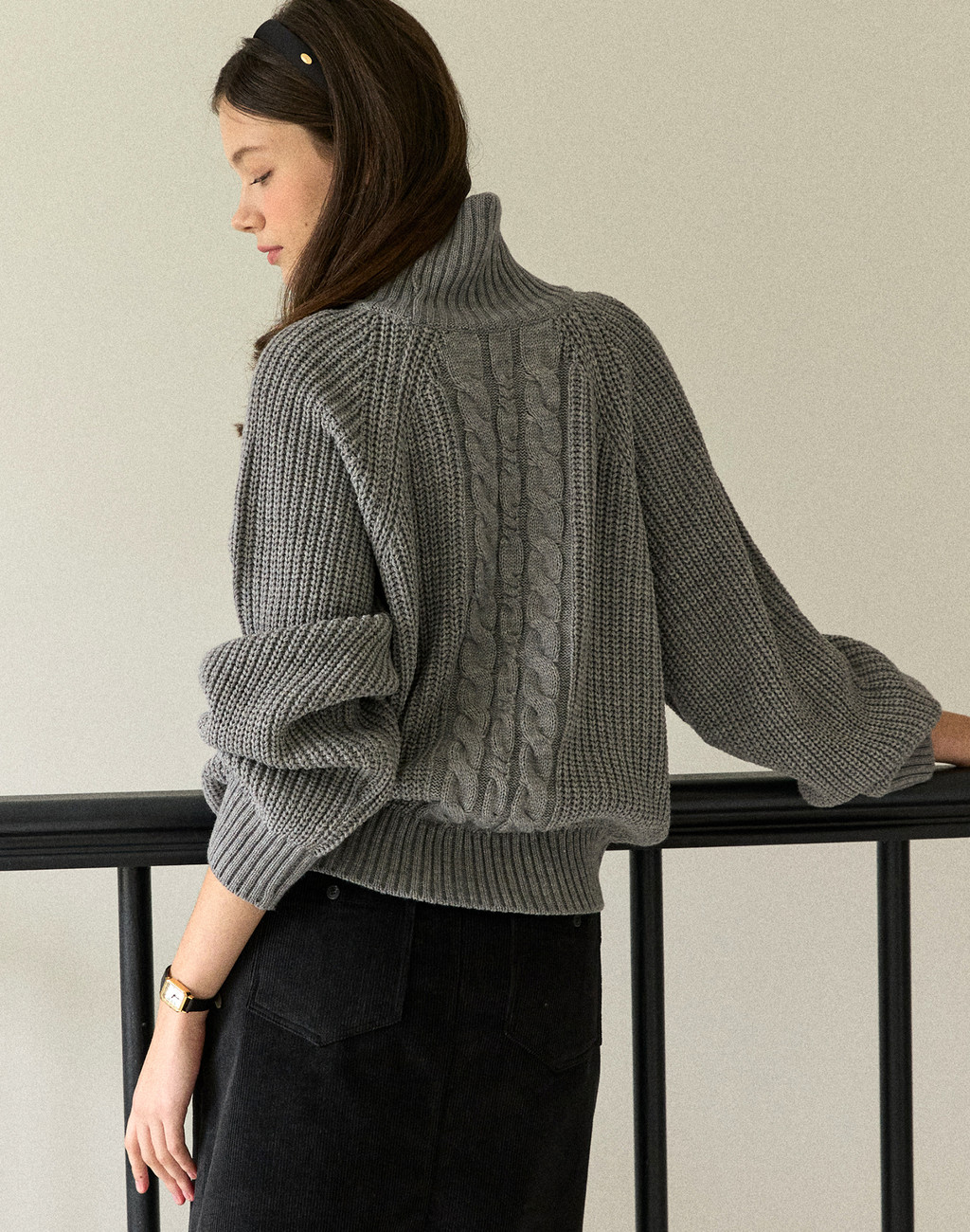 Phoebe Cable Turtleneck Knit - Melange Grey