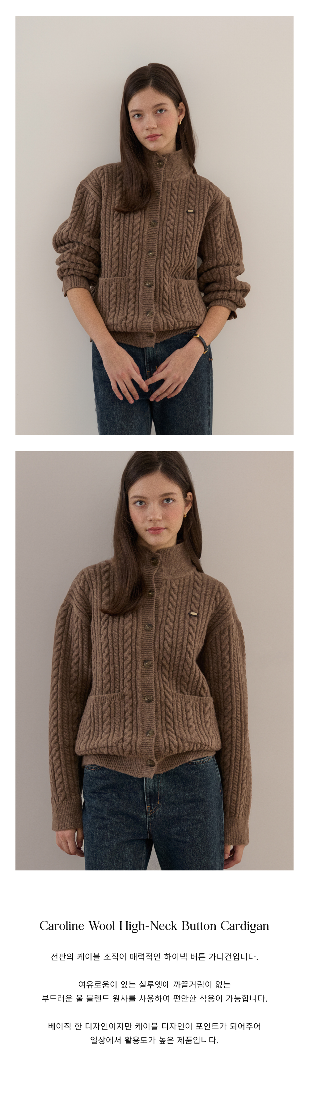 Caroline Wool High-Neck Button Cardigan - Brown