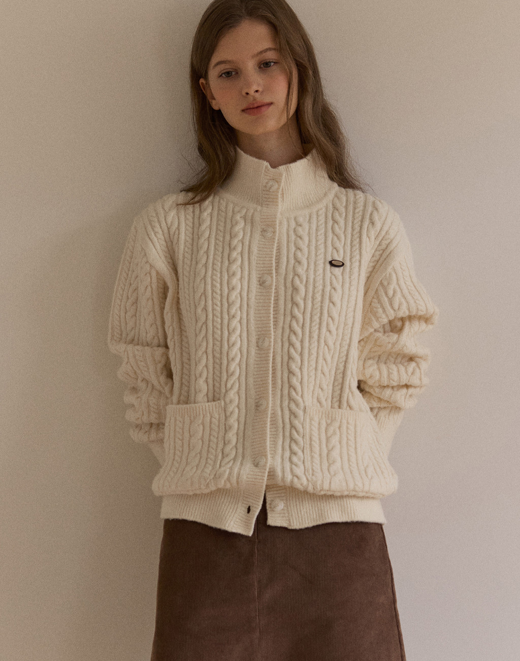 Caroline Wool High-Neck Button Cardigan - Ivory