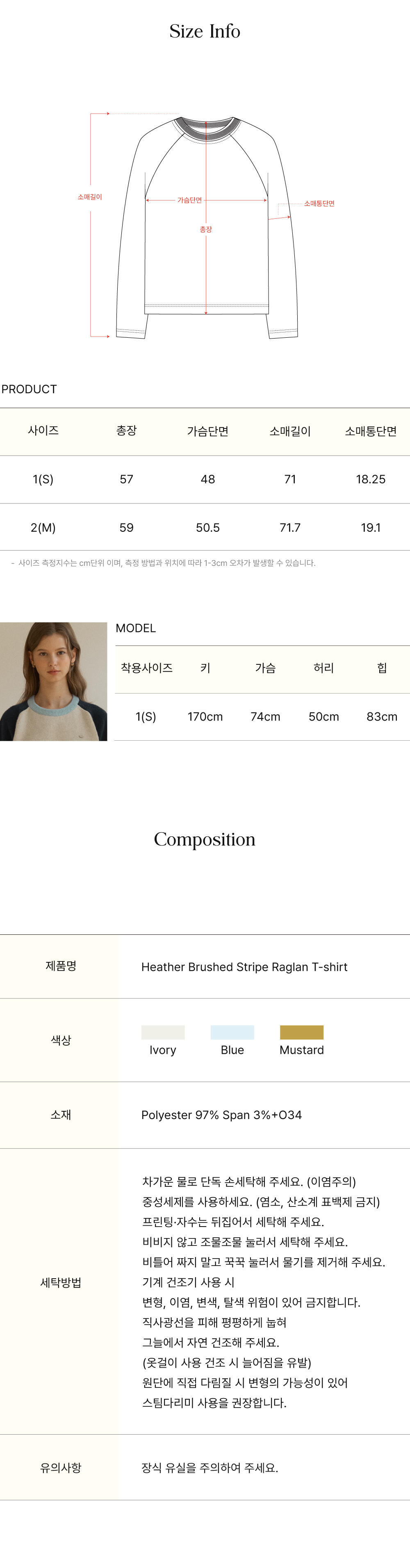 Heather Brushed Stripe Raglan T-shirt - Mustard