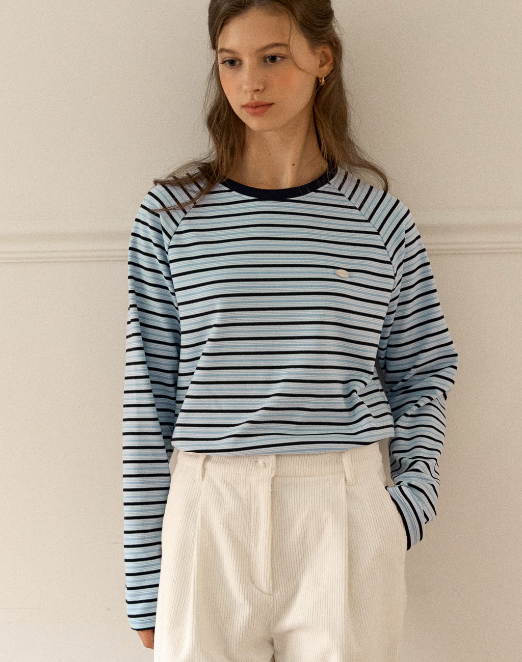 Heather Brushed Stripe Raglan T-shirt - Blue