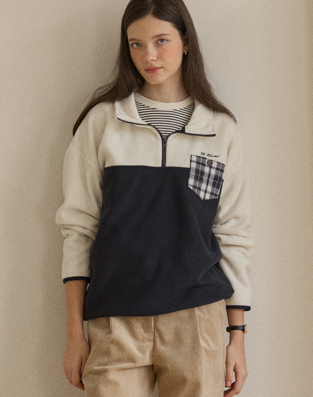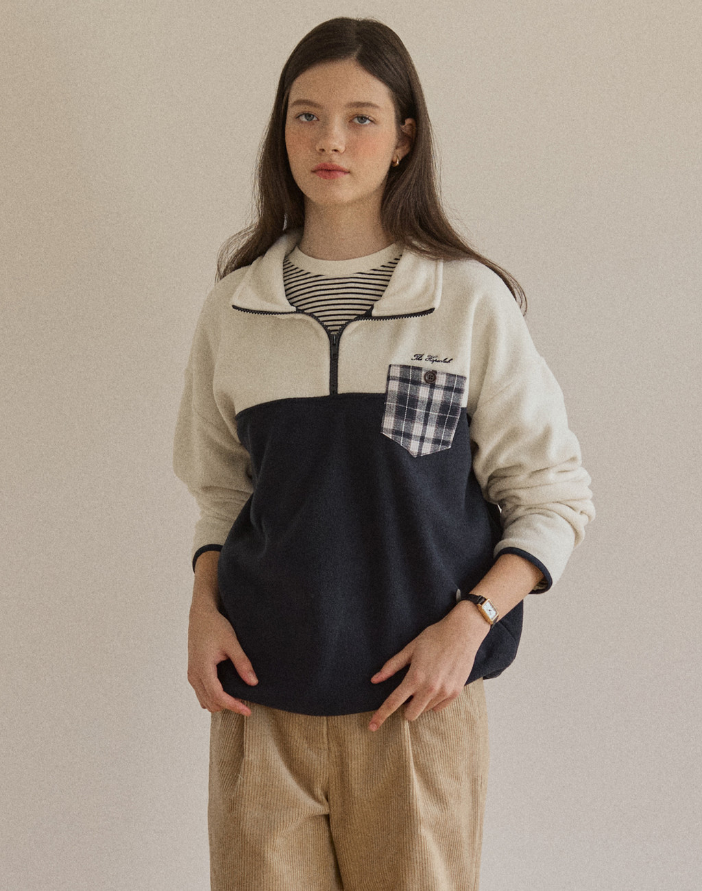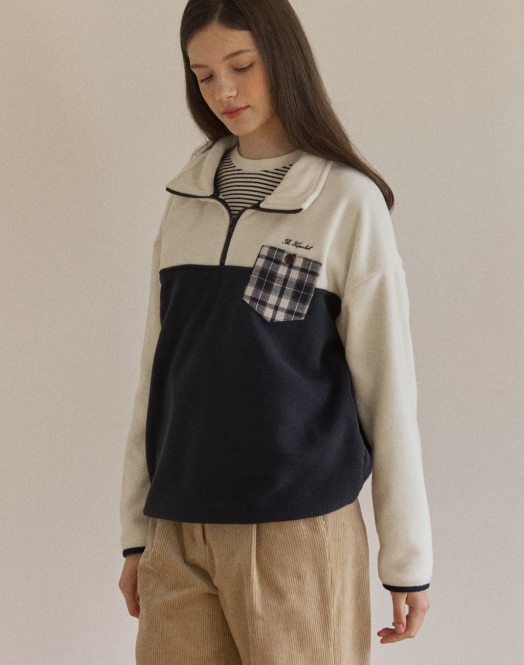 Check Comfy Fleece Half Zip-Up - Navy
