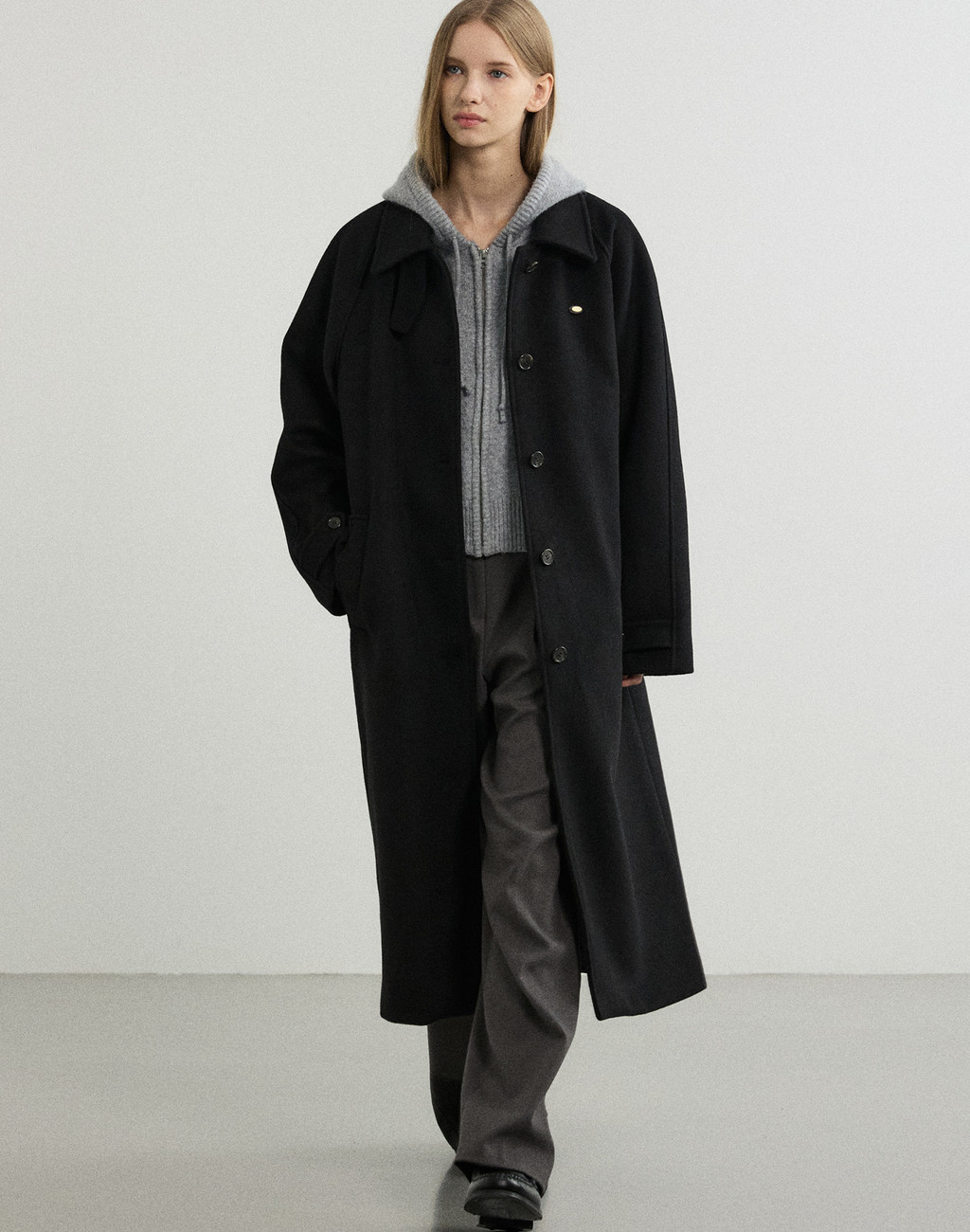 Loraine Wool Balmacaan Coat - Black