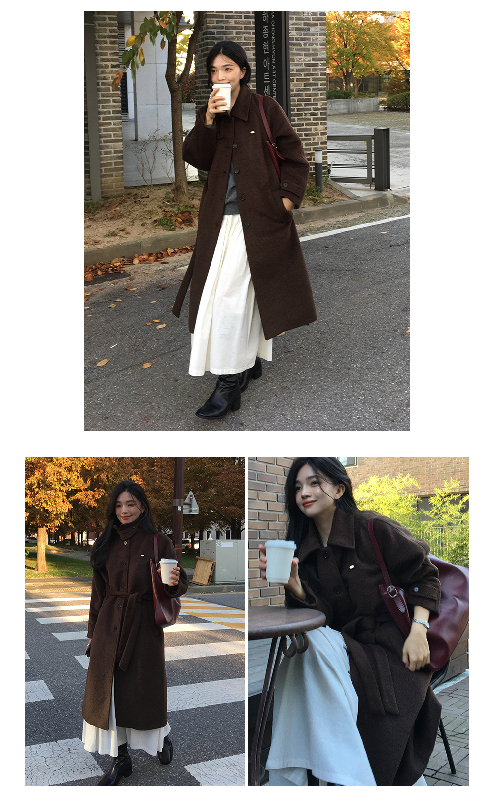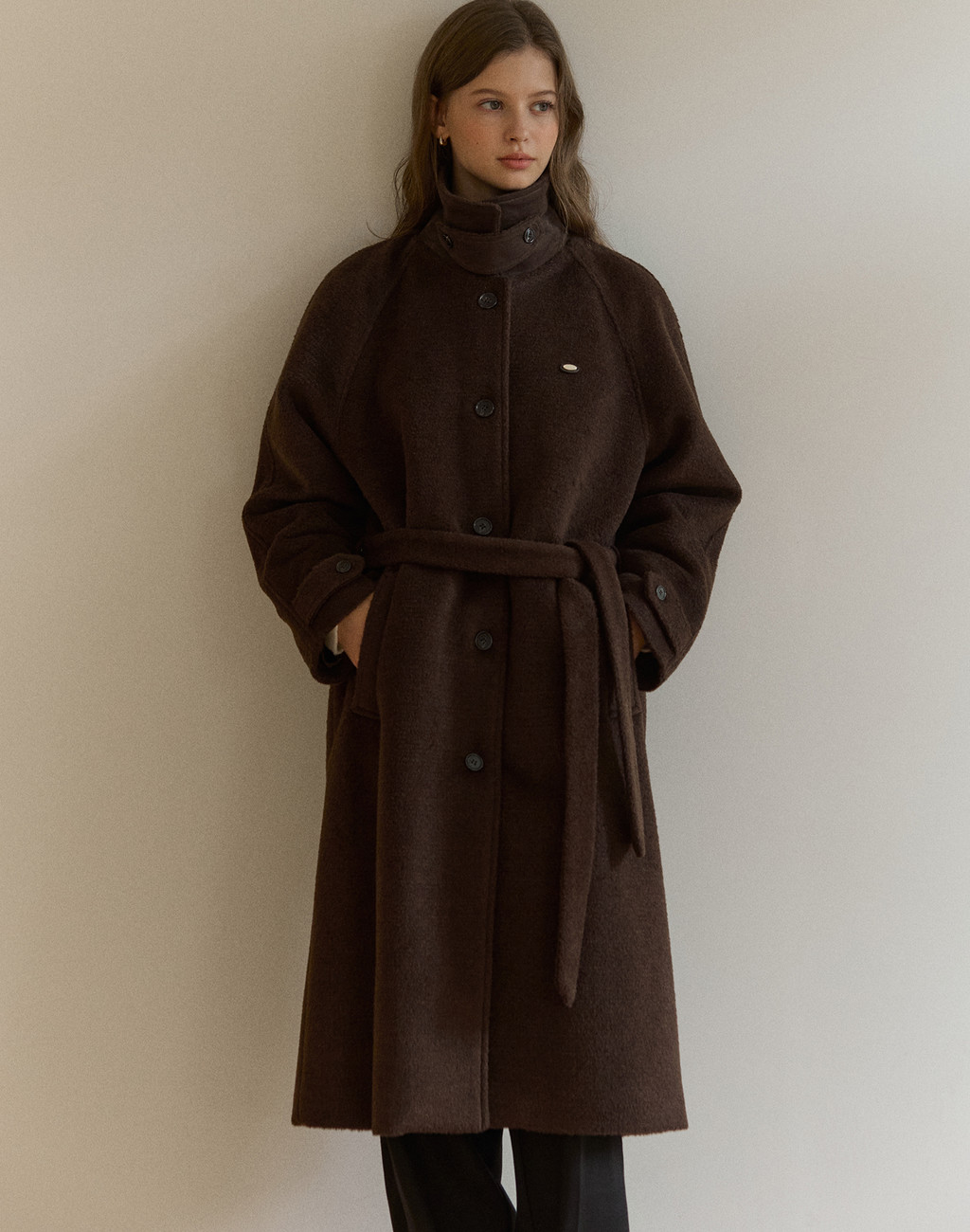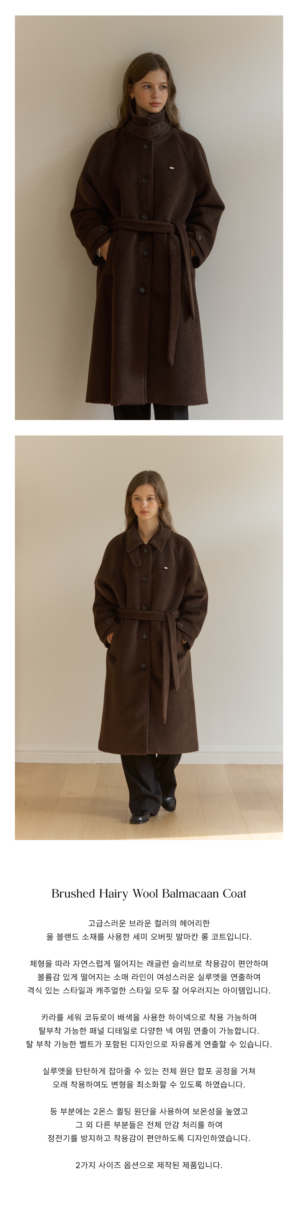 Brushed Hairy Wool Balmacaan Coat - Brown
