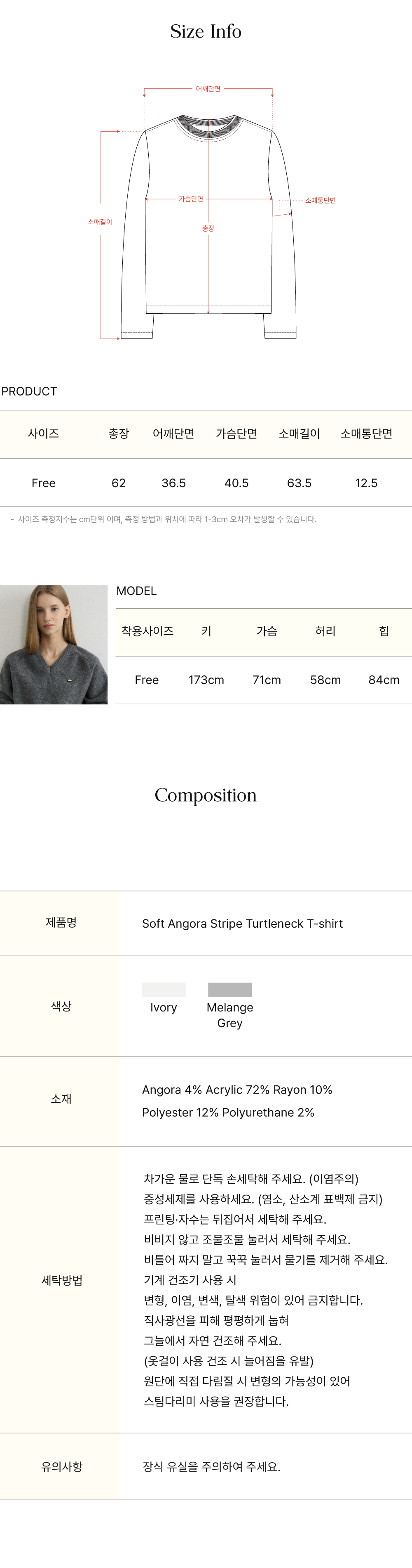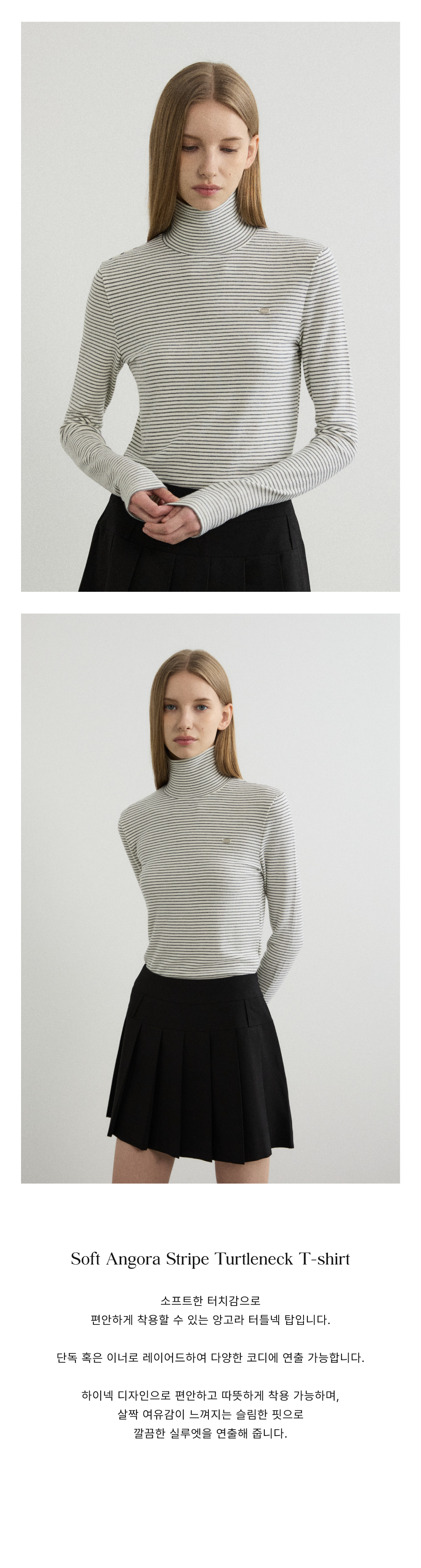 Soft Angora Stripe Turtleneck T-shirt - Ivory