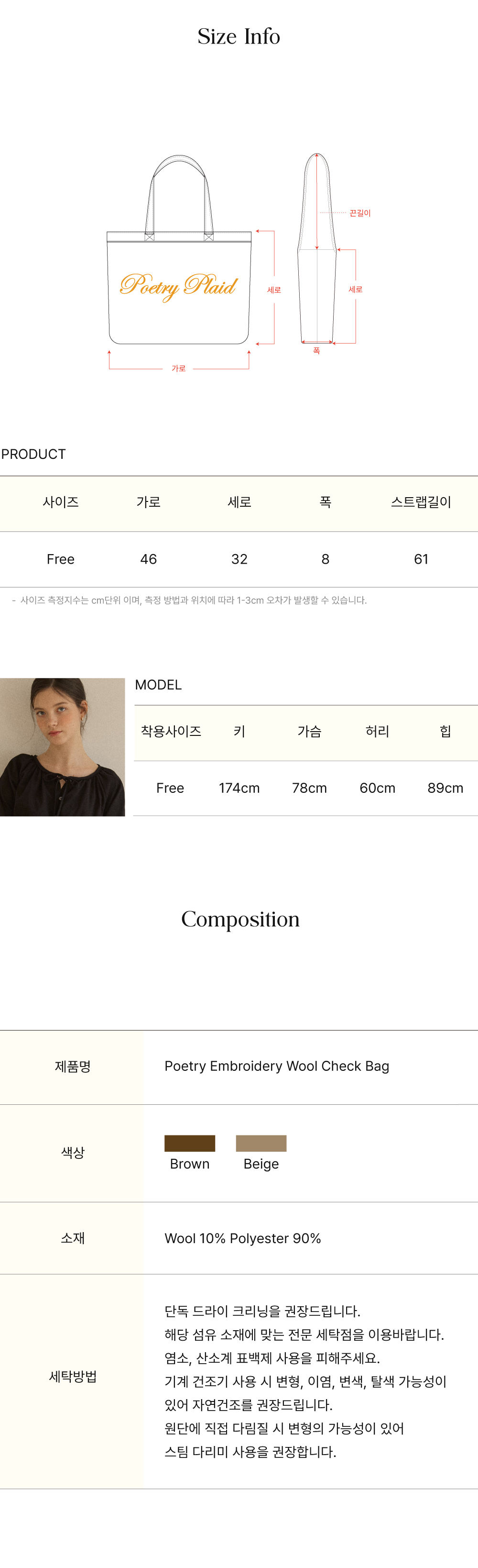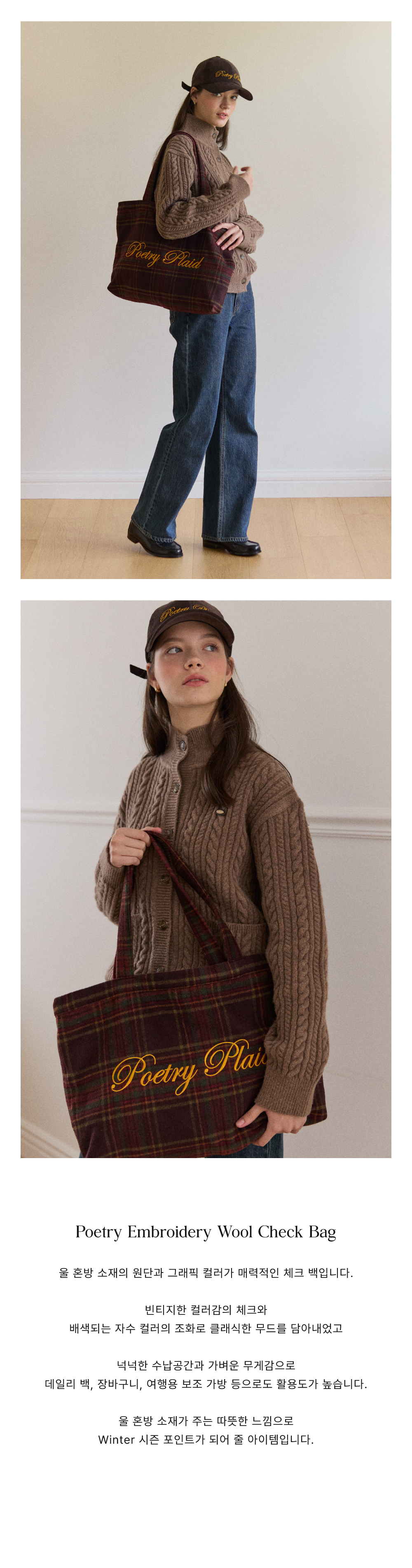 Poetry Embroidery Wool Check Bag - Brown