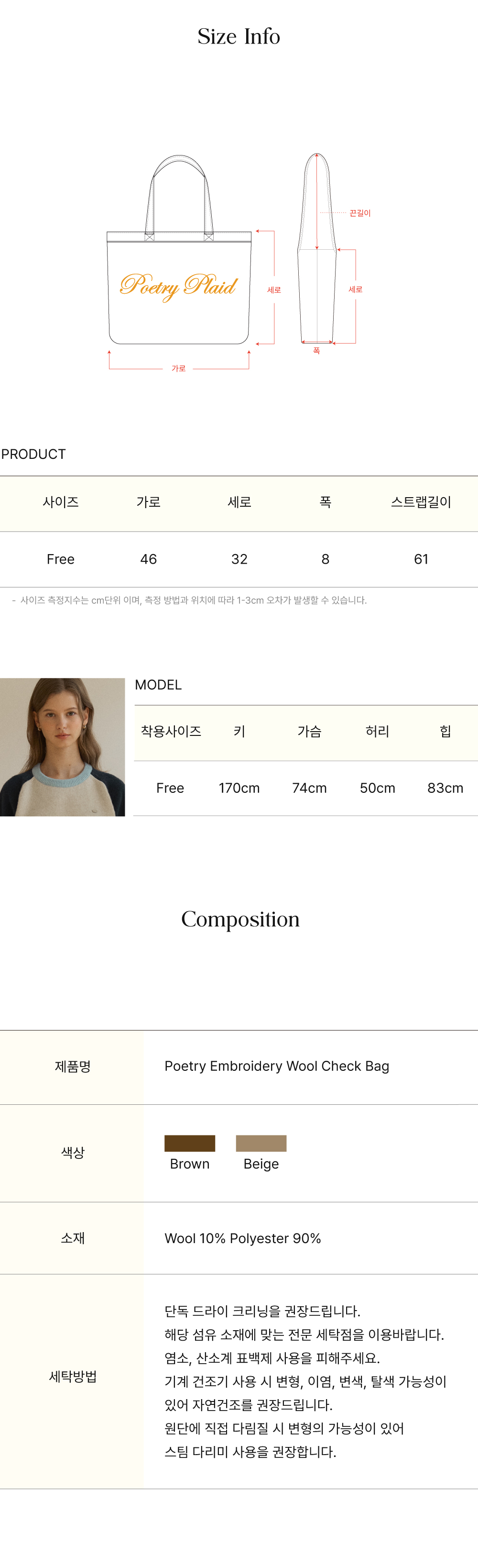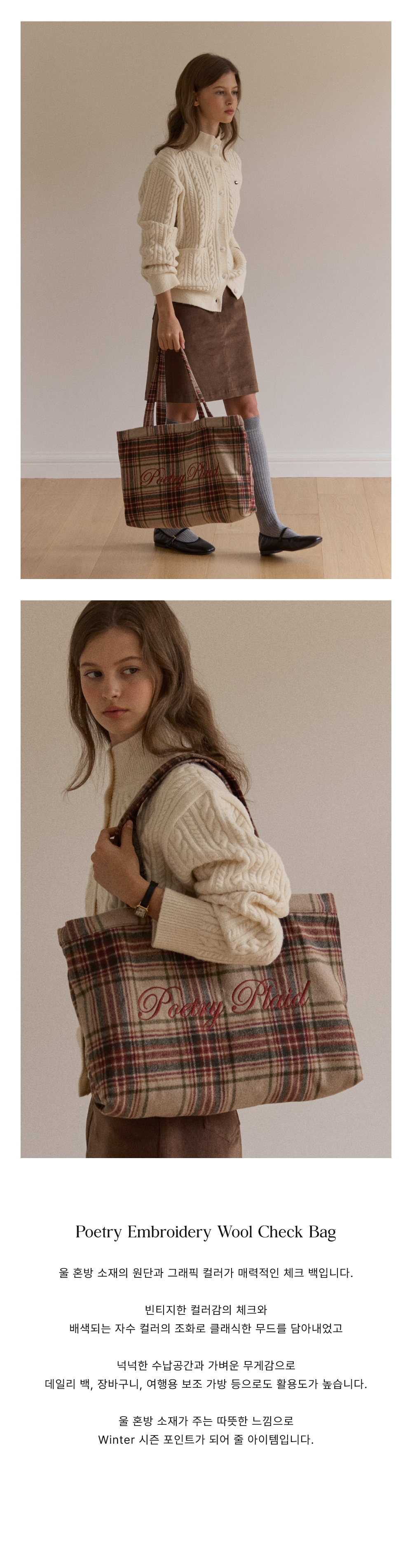 Poetry Embroidery Wool Check Bag - Beige