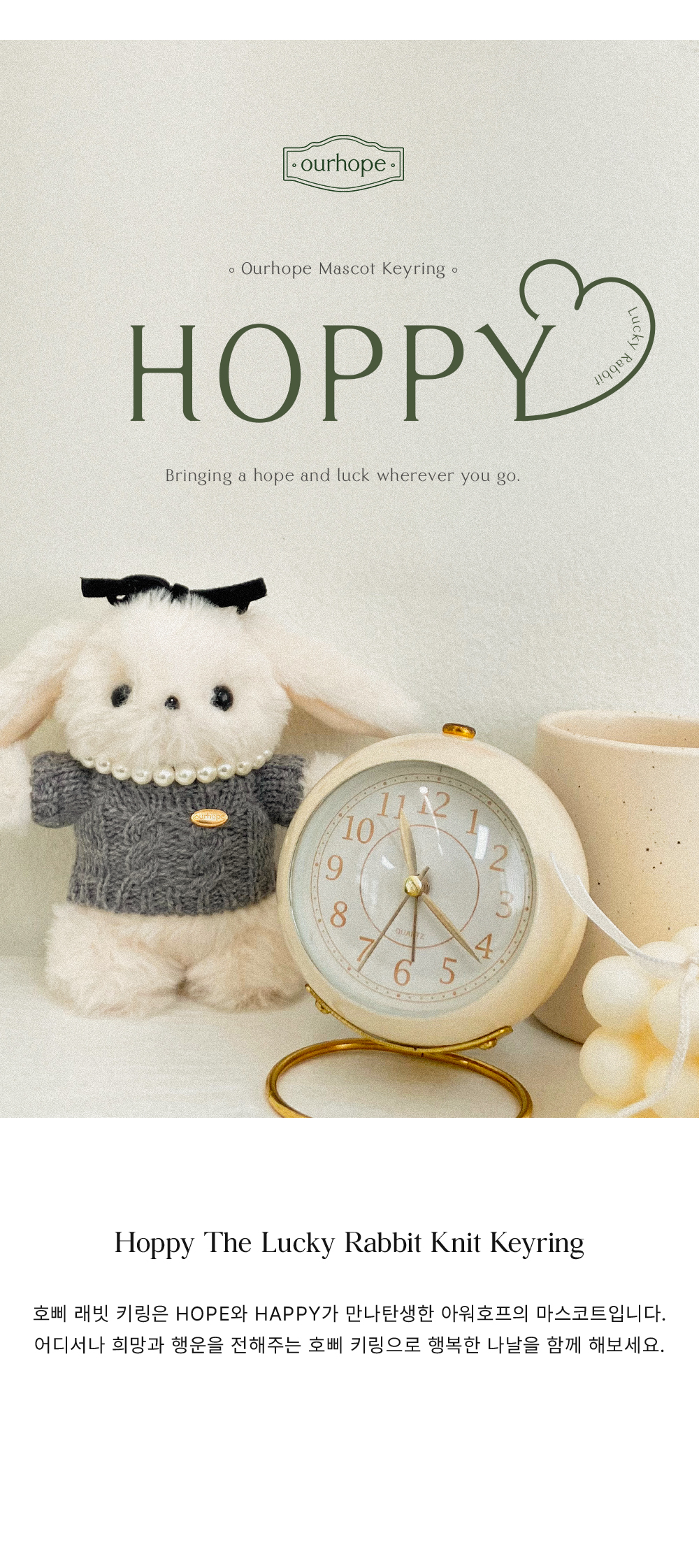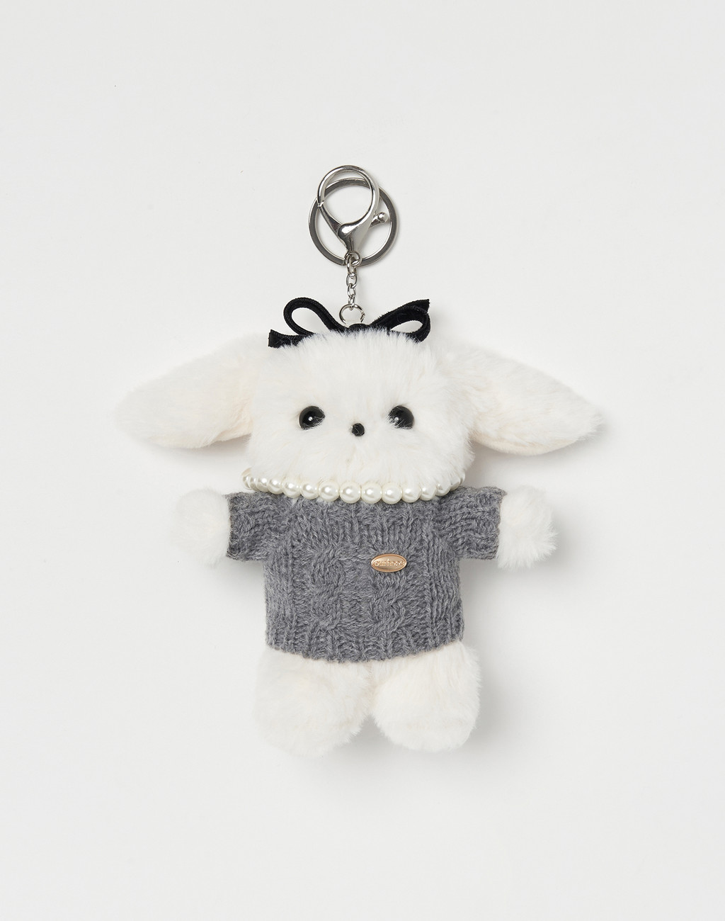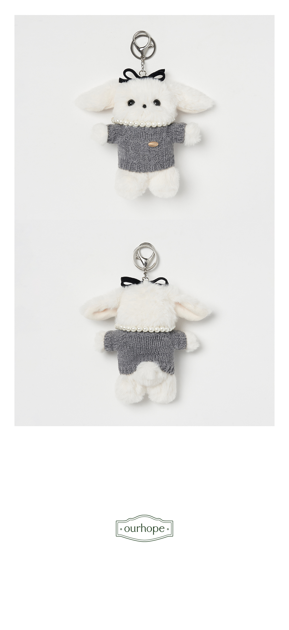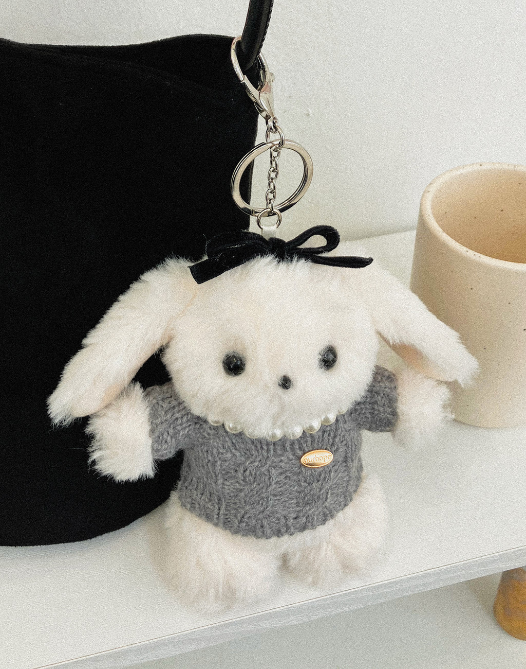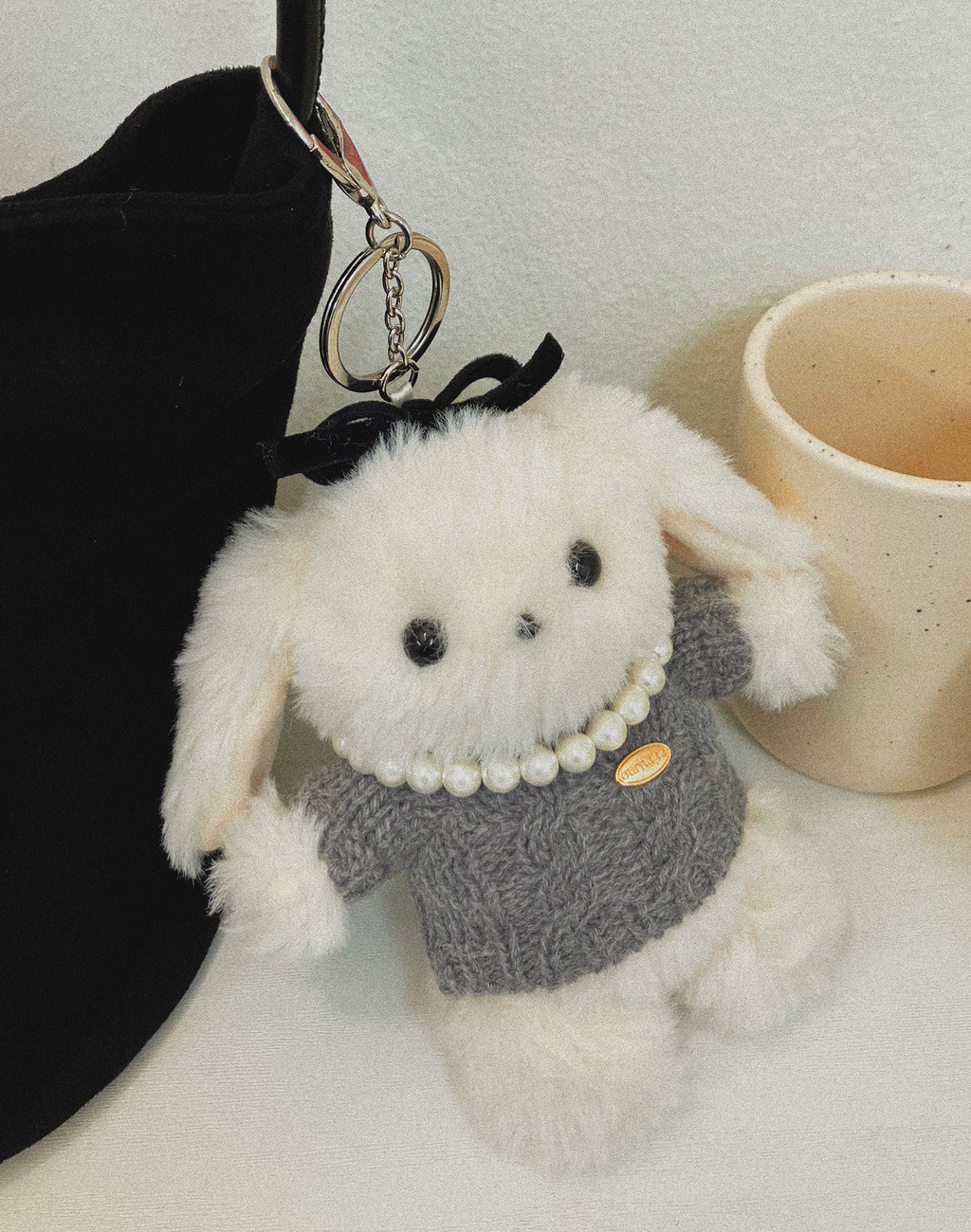 Hoppy The Lucky Rabbit Knit Keyring - White