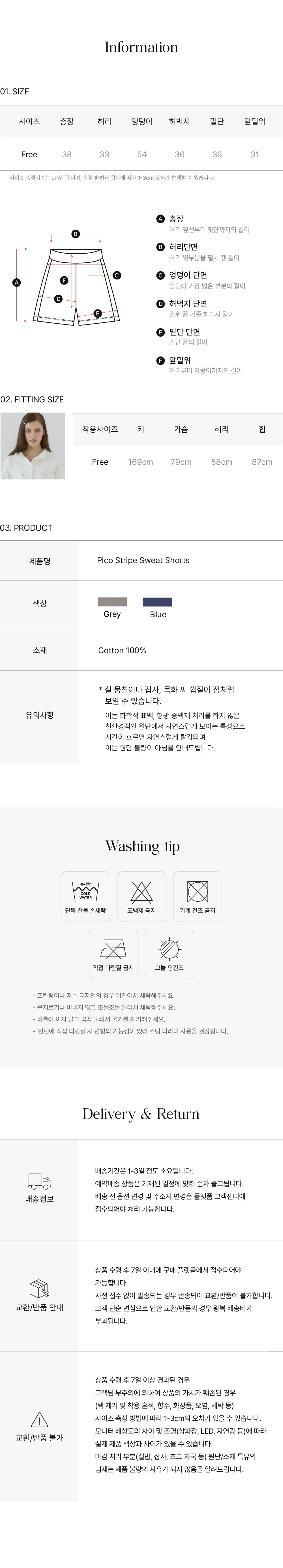 피코 스트라이프 스웨트 숏츠 - Blue