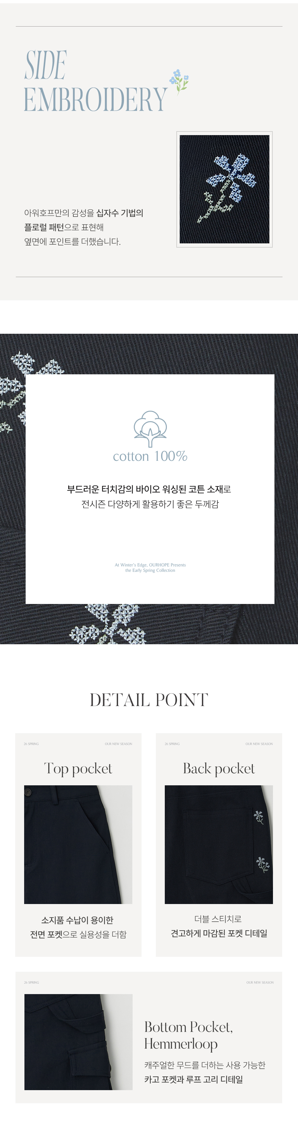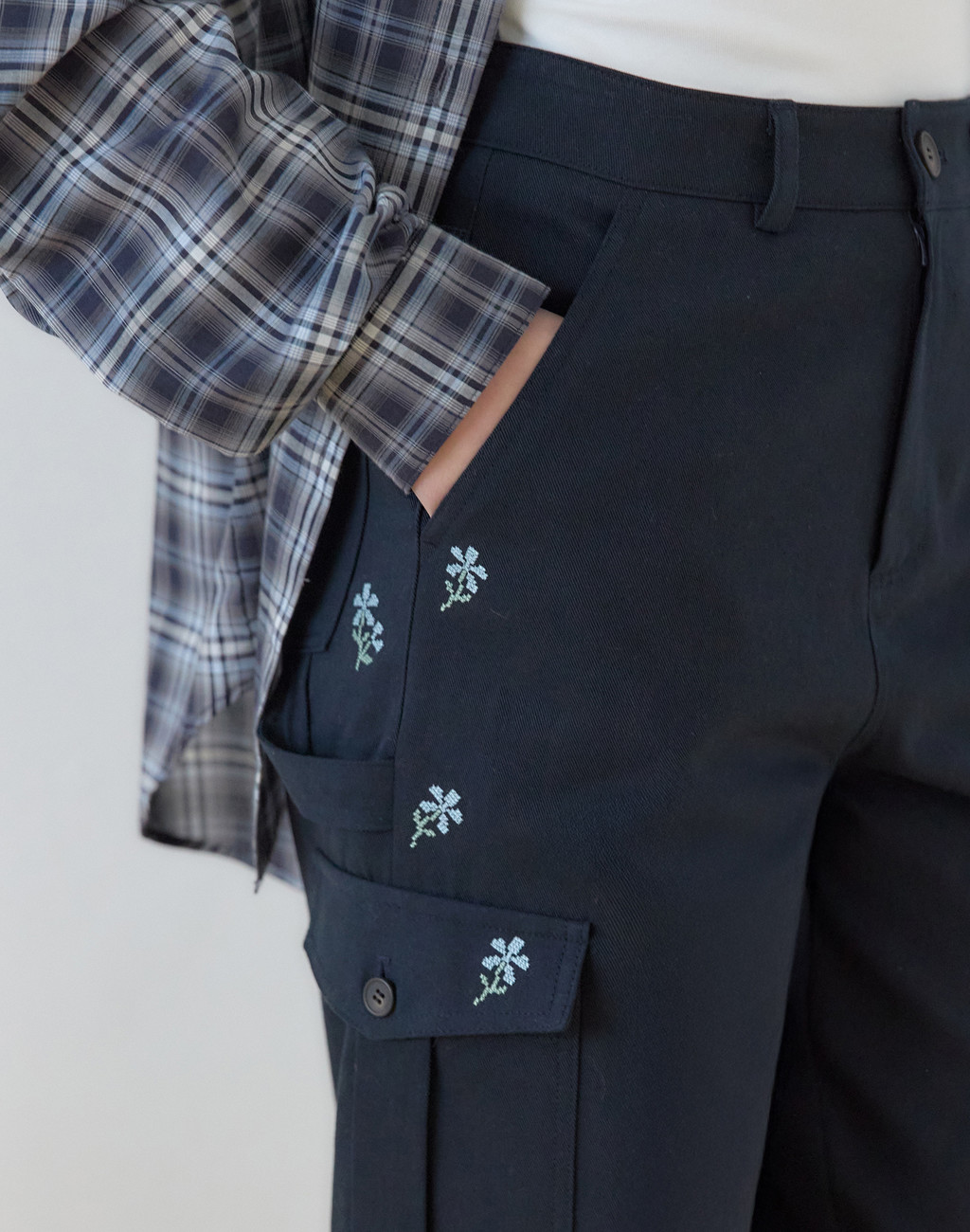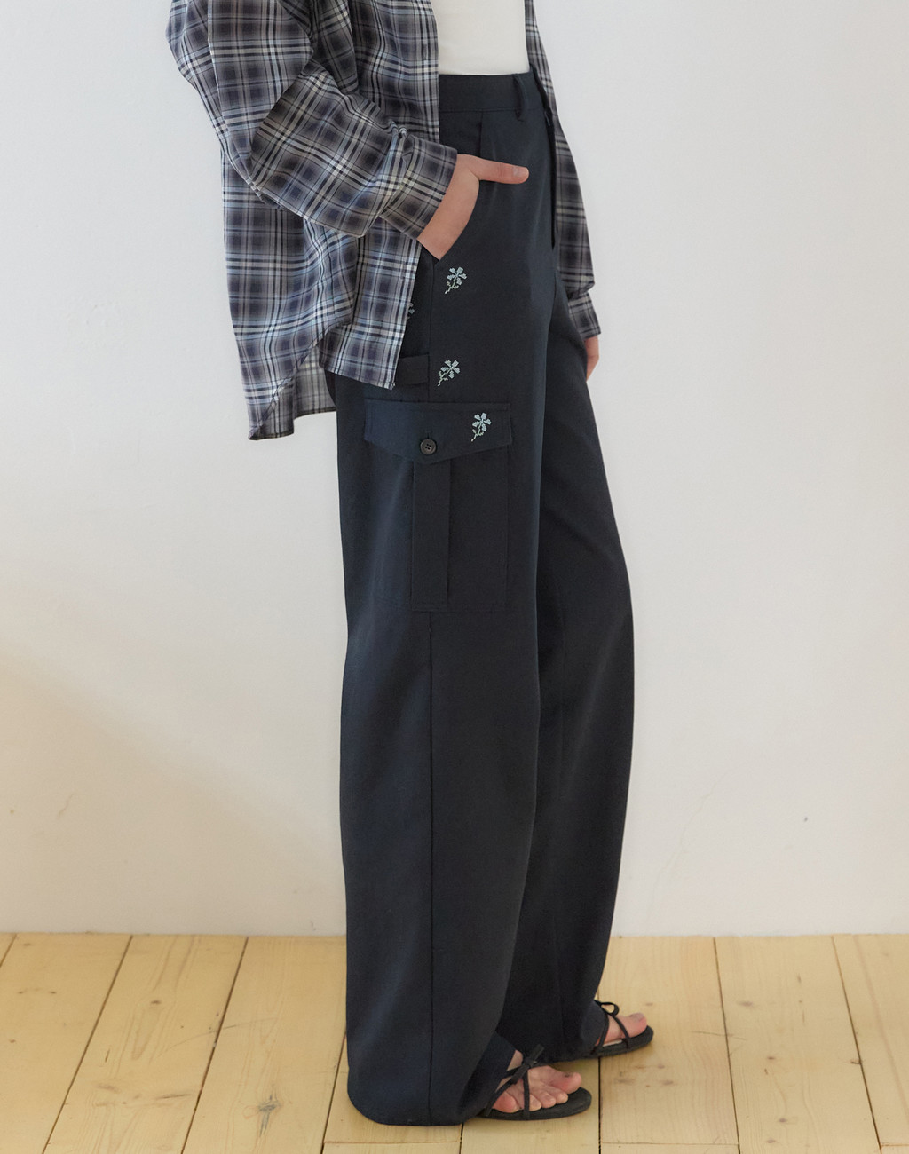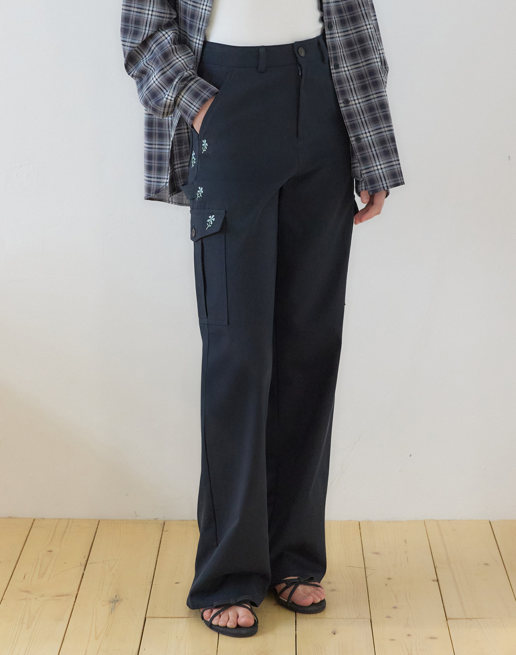 플로라 엠브로이더리카펜더 팬츠 - Navy