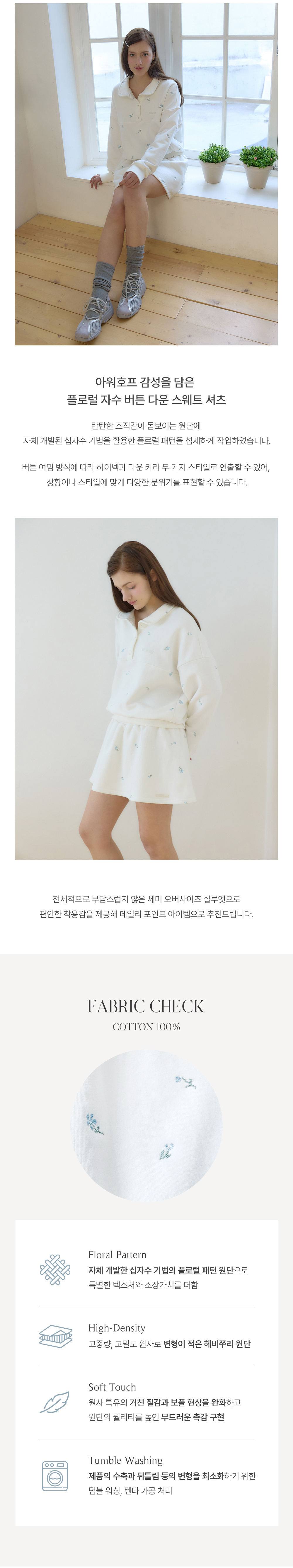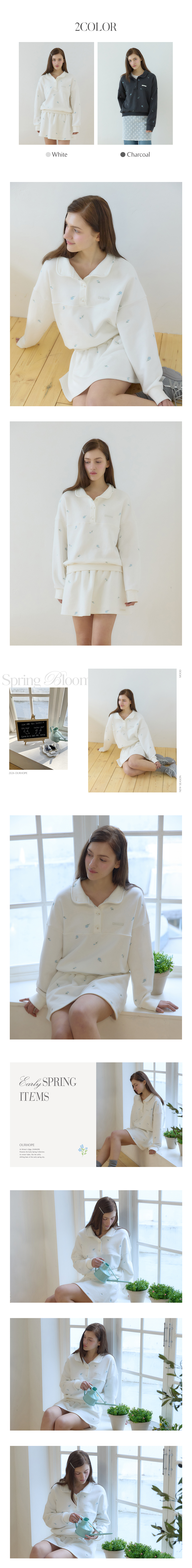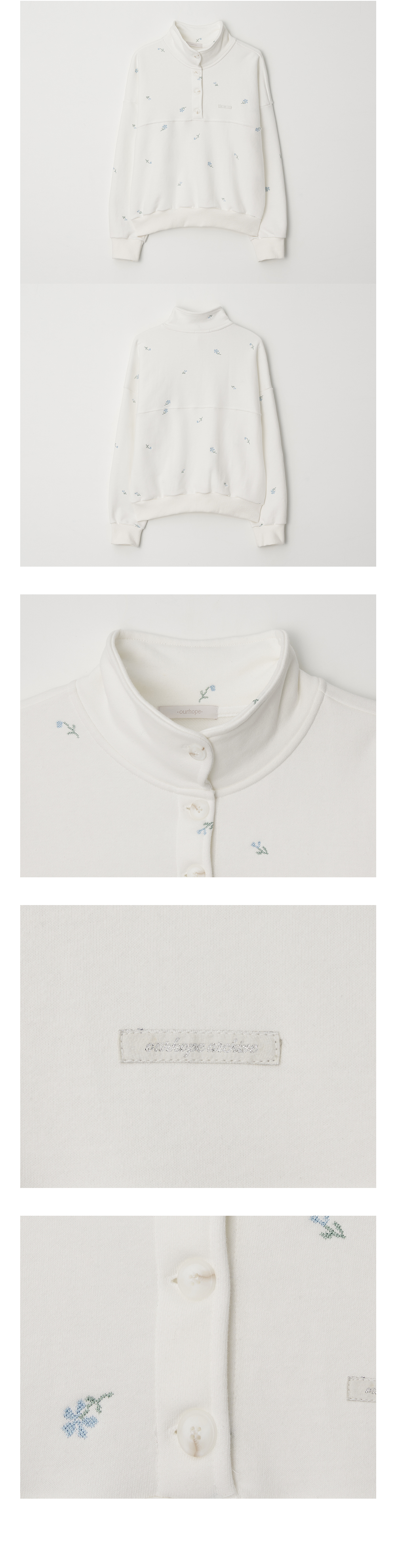 플로라 엠브로이더리버튼다운 스웨트셔츠 - White