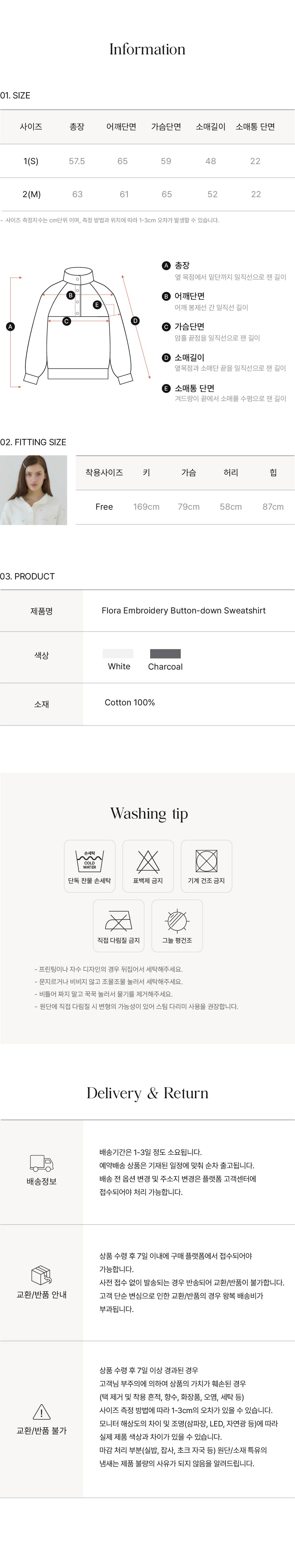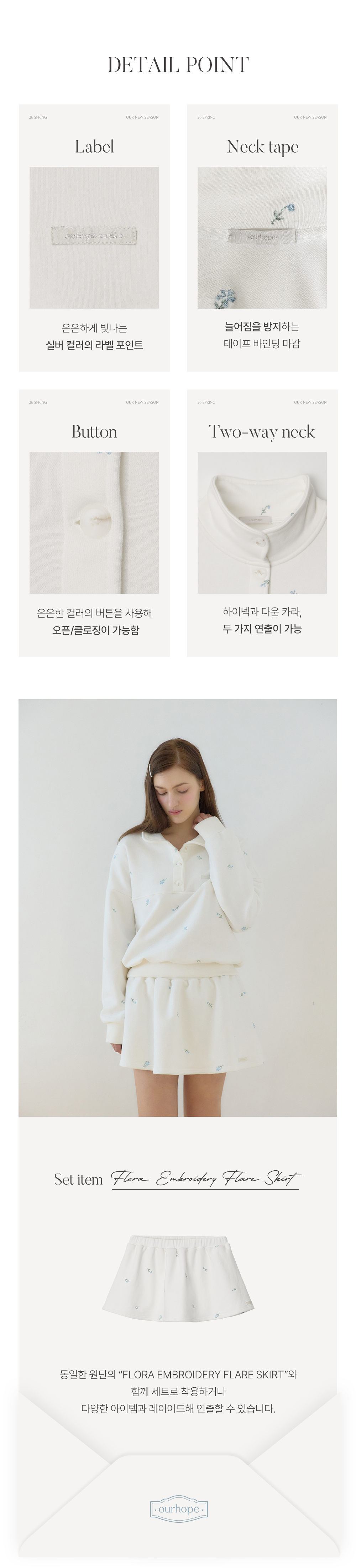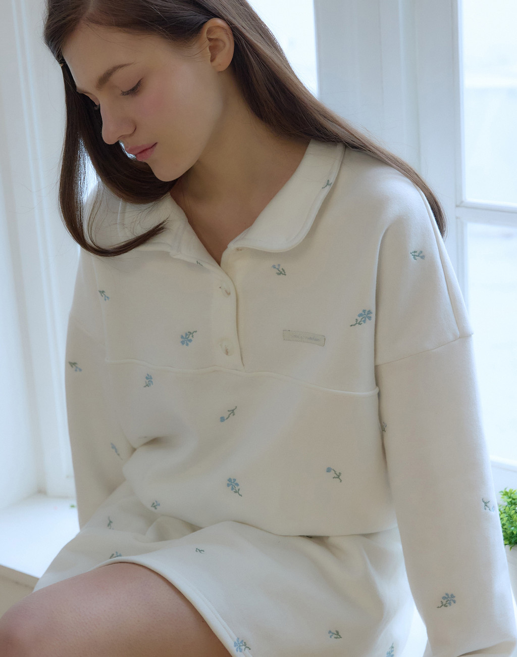 플로라 엠브로이더리버튼다운 스웨트셔츠 - White