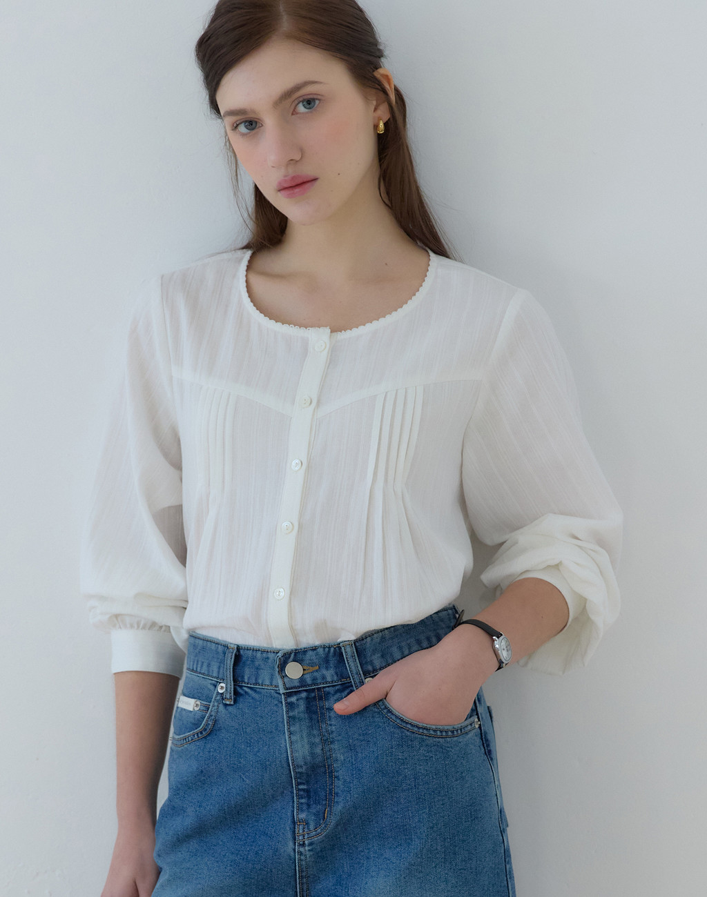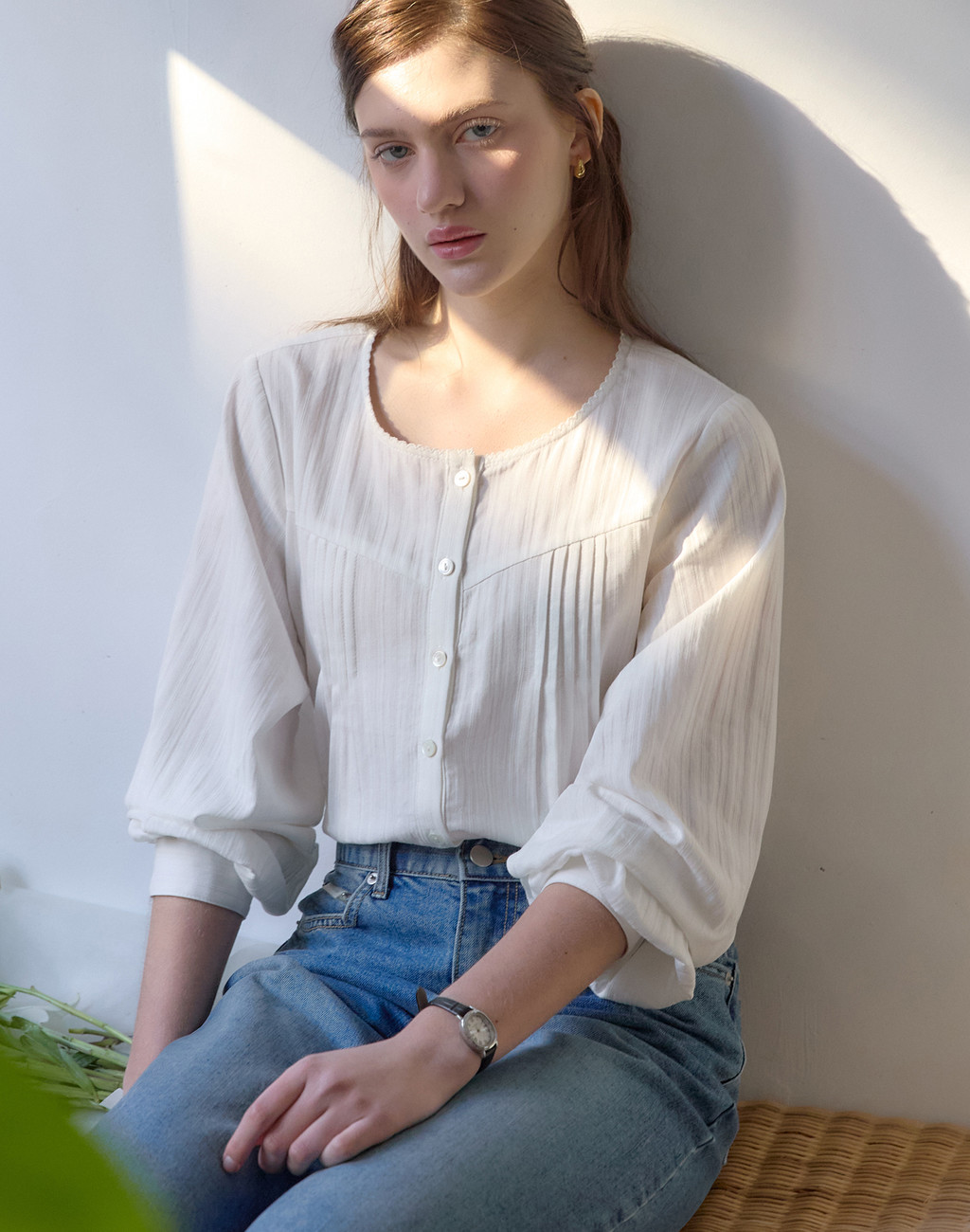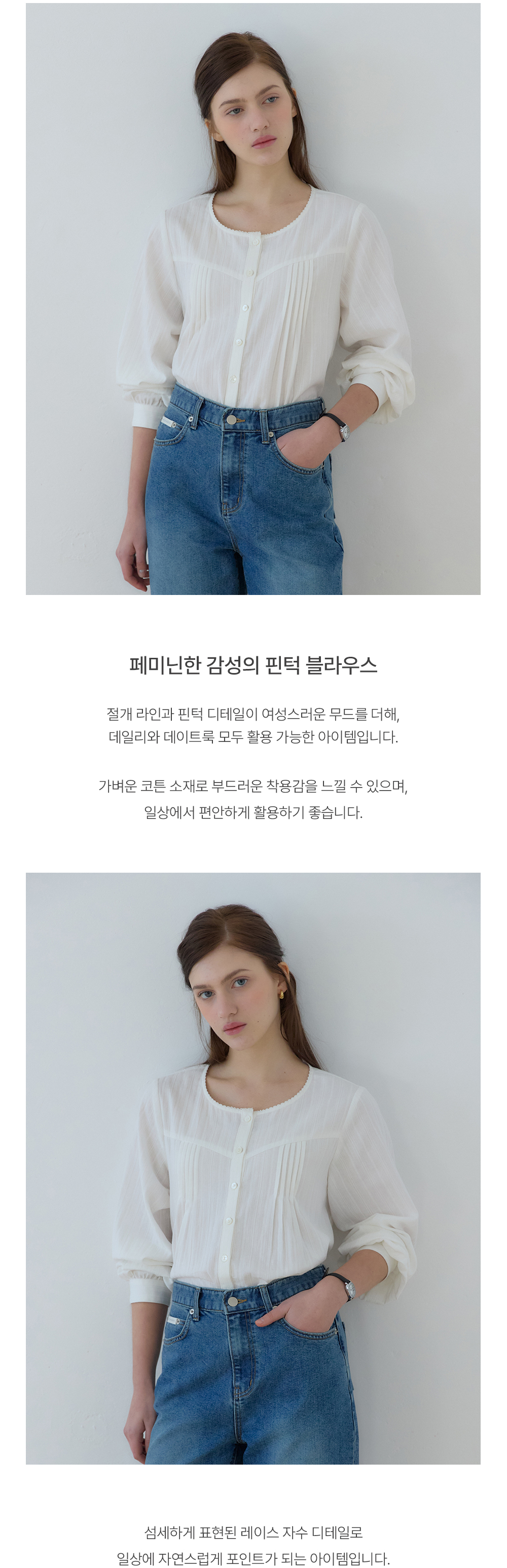 로지 핀턱 블라우스 - Ivory