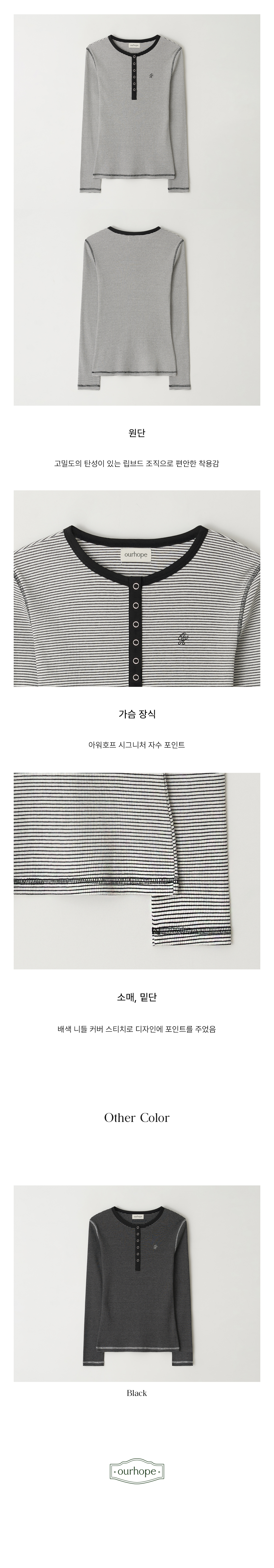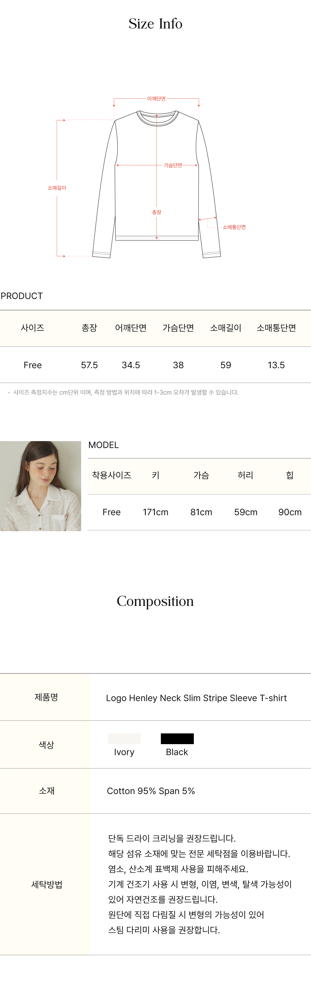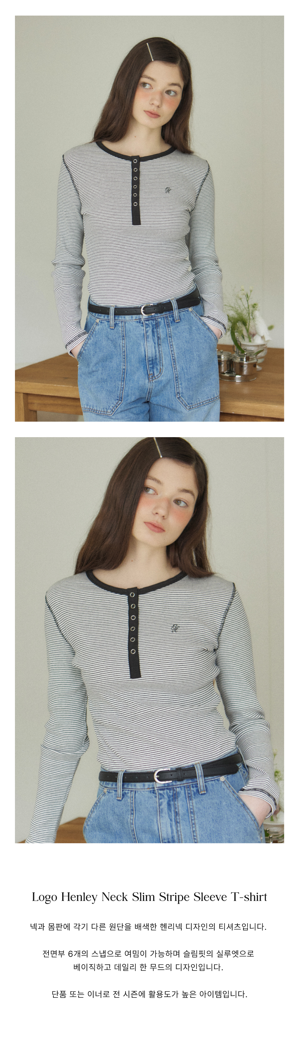 Logo Henley Neck Slim Stripe Sleeve T-shirt - Ivory
