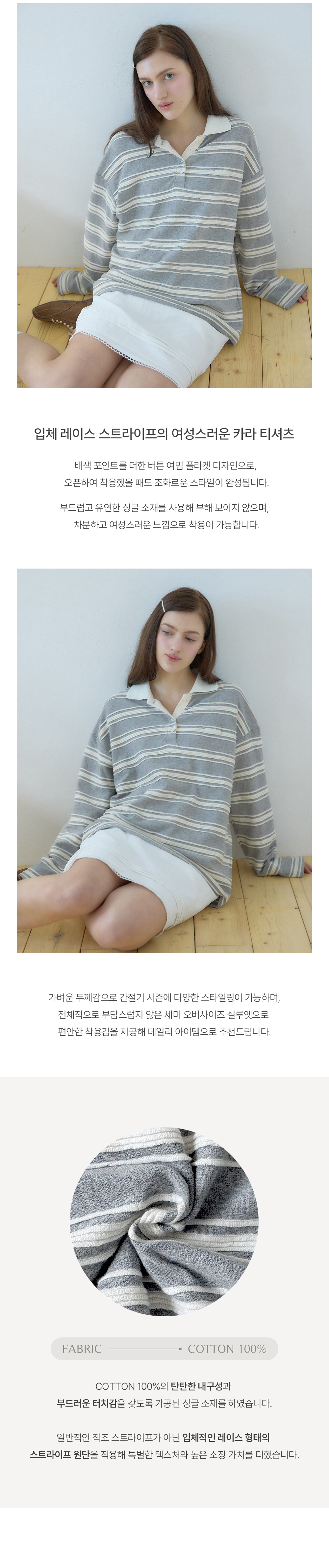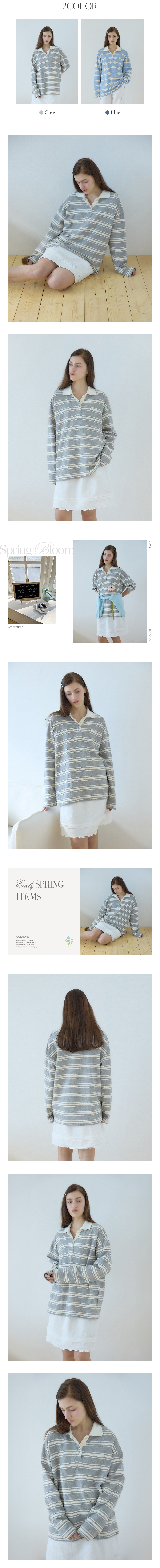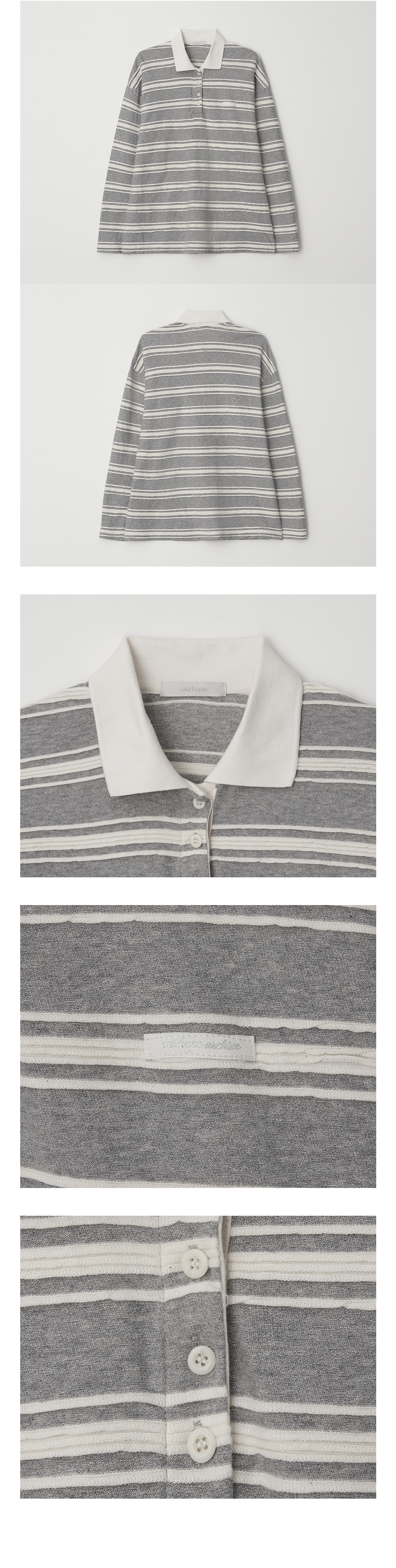 레이시 스트라이프 카라 티셔츠 - Grey