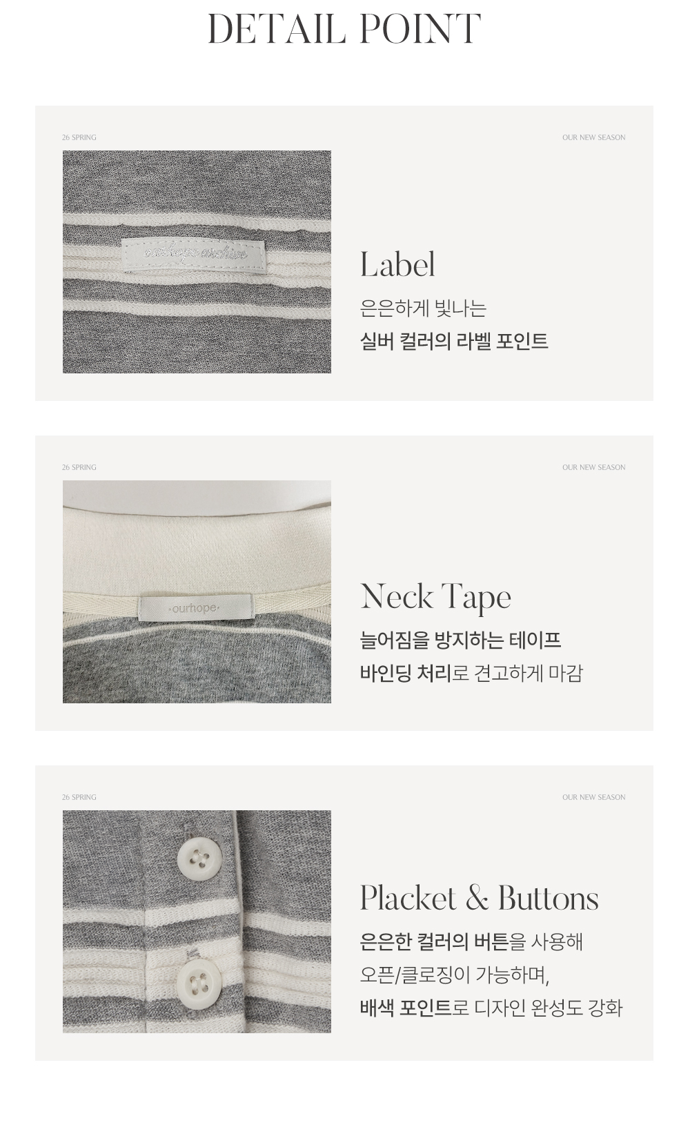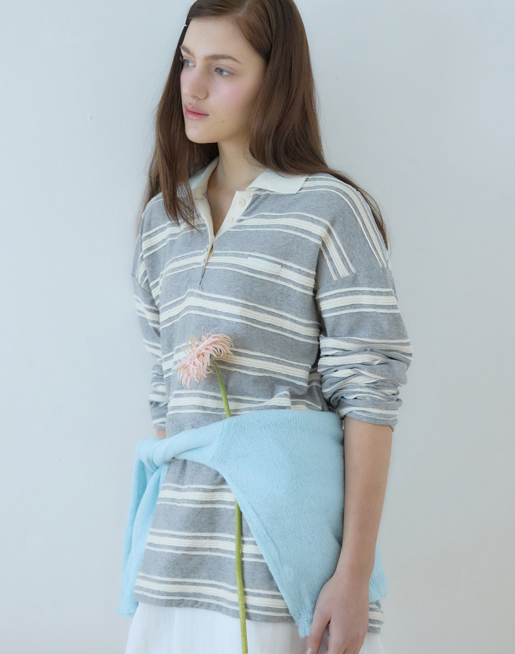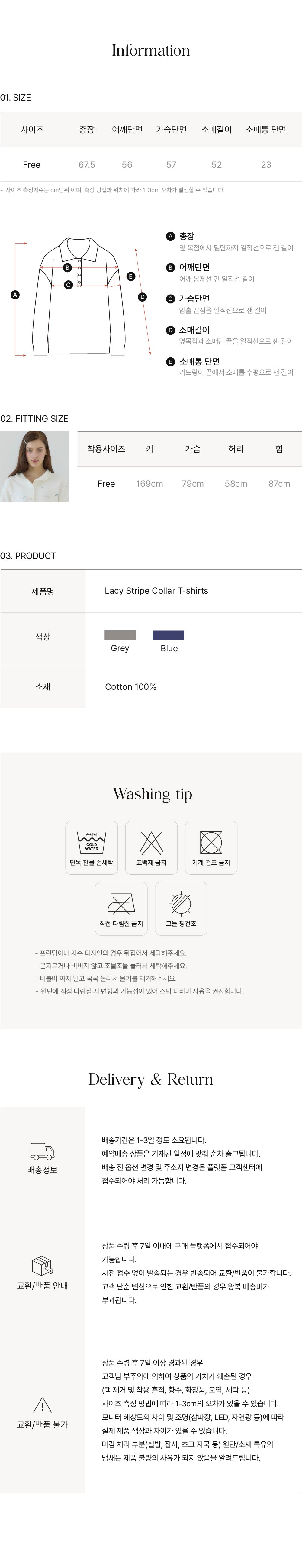 레이시 스트라이프 카라 티셔츠 - Grey